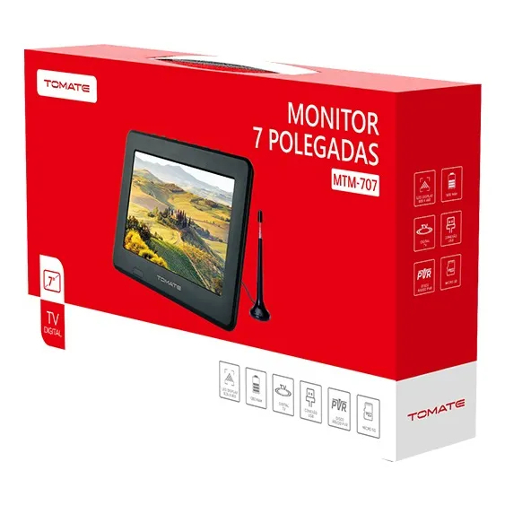 TV Portátil Monitor Tomate MTM-909 - 9 Polegadas ✨ Entretenimento Compacto, Aonde Quer Que Você Vá!A TV Portátil Monitor Tomate MTM-909 é a escolha perfeita para levar seus programas favoritos, filmes e tarefas profissionais em um dispositivo prático e compacto. Com tela de 9 polegadas, ela une a funcionalidade de TV digital e monitor em um único equipamento — ideal para viagens, acampamentos, quartos extras ou uso no dia a dia! 🎥 Especificações e Funcionalidades Destacadas✅ Tela de 9 Polegadas: Resolução 800x480, compatível com formatos 16:9 e 4:3 (adaptável a qualquer tipo de conteúdo)✅ Consumo Energético Eficiente: ≤15W — economiza bateria e ideal para uso prolongado✅ Bateria Embutida de Alta Performance: 1600mAh/7.4V — autonomia suficiente para assistir episódios completos sem tomada✅ Antena Externa Inclusa: Captura canais de TV aberta com sinal estável, sem complicações✅ Função Monitor Multiuso: Conecte a notebooks, celulares ou consoles (ex: Nintendo Switch) e expanda sua tela de visualização 📏 Dimensões e Peso Ultra Práticos▪️ Dimensões do dispositivo: ~23 x 14 x 2 cm (super compacto, cabe facilmente em bolsas ou mochilas pequenas)▪️ Peso do produto (sem embalagem): ~500g — leve e confortável para transportar diariamente 🏠 Aplicações Versáteis para Toda Ocasião➡️ Viagens: Perfeito para longas trajetos de carro, avião ou ônibus➡️ Acampamentos: Assistir TV ou filmes sem acesso a energia elétrica➡️ Espaços Domésticos: TV compacta para quartos de crianças, visitantes ou home office➡️ Trabalho: Monitor secundário ideal para notebooks em viagens de negócios