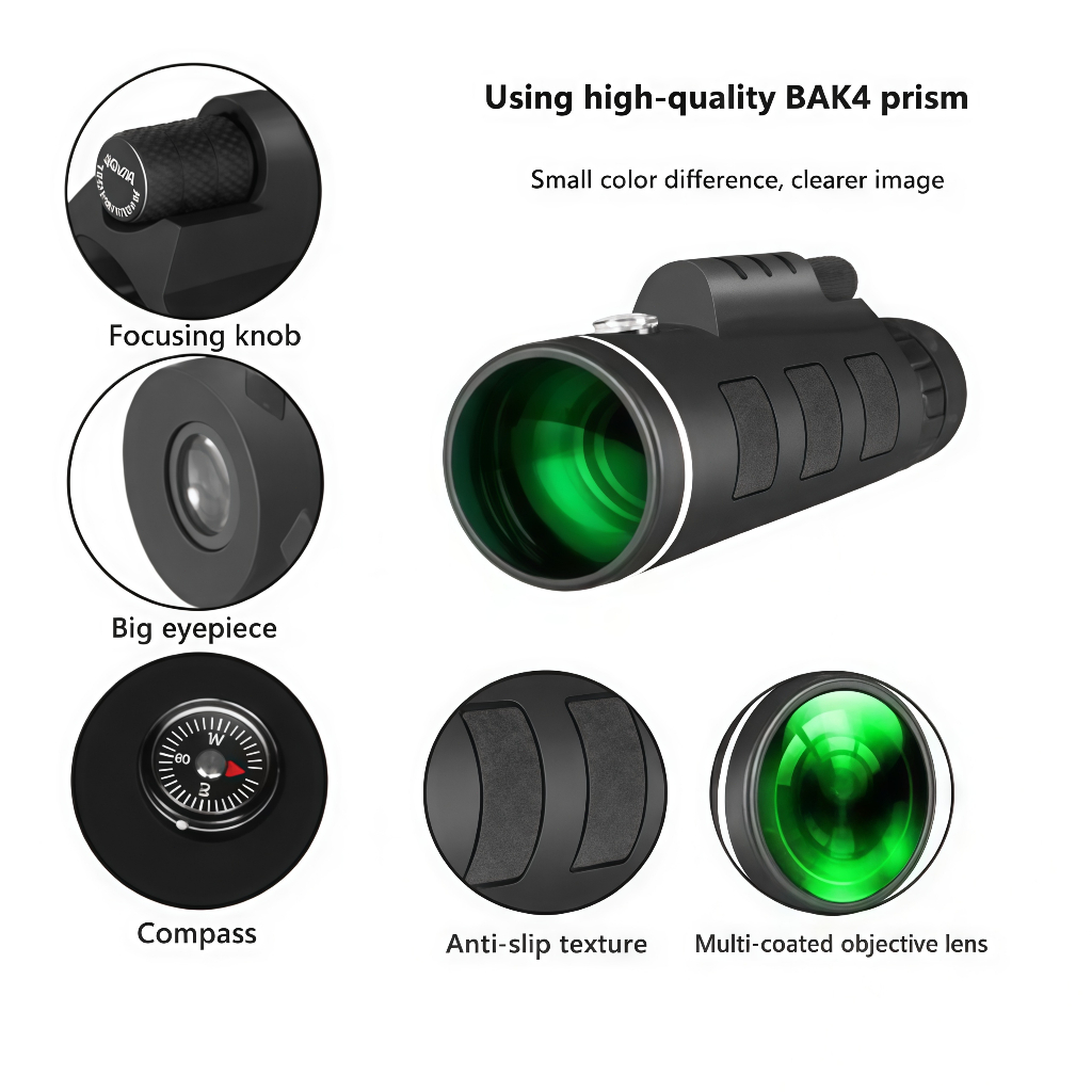 Monóculo Telescópio HD 40x60 Portátil com Zoom (com Tripé e Suporte para Celular)