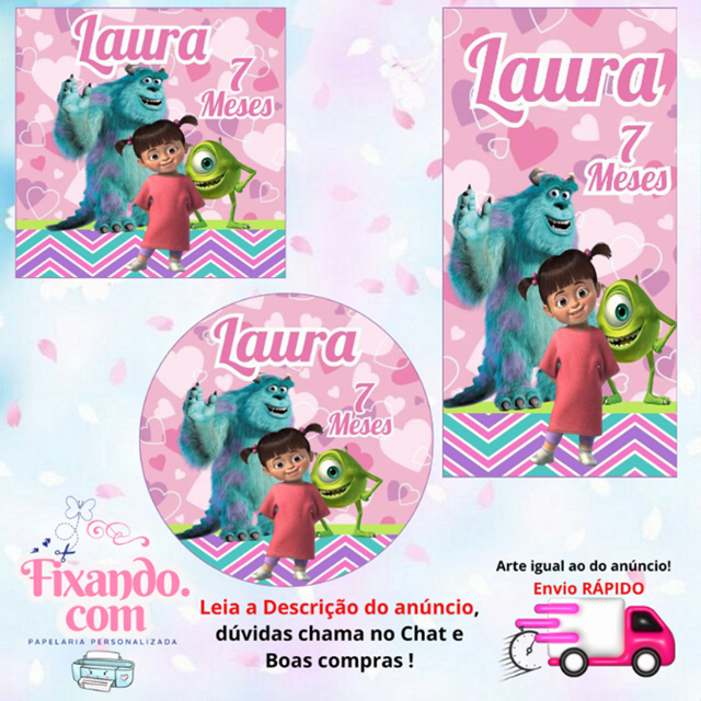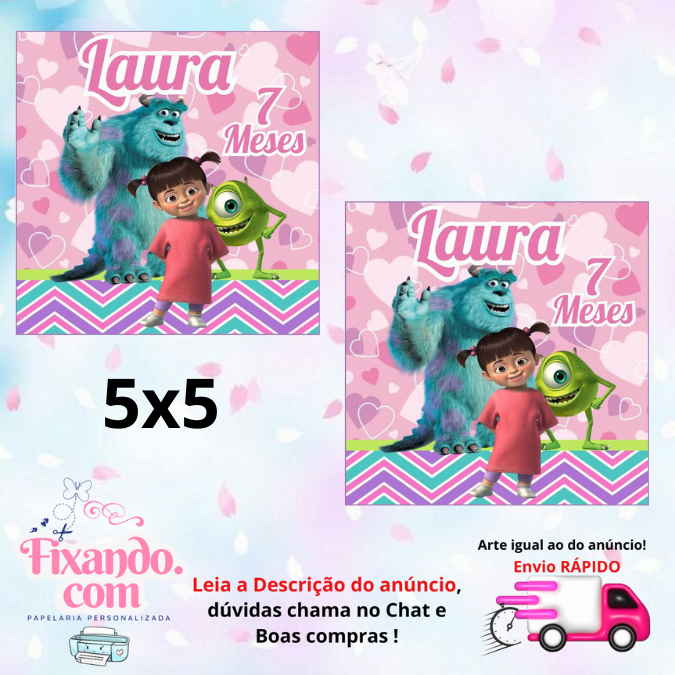 Tema: MONSTROS S.A ROSA ✨PAPEL ADESIVO 115G ✨REDONDO TAMANHO 5X5 ✨ QUADRADO TAMANHO 5X5 ✨ TUBETE TAMANHO 7X3,5 OBSERVAÇÃO: Os adesivos NÃO são em 3D ✨ Personalizáveis com o nome e idade ✨ Papel adesivo com brilho e alta qualidade ✨Não alteramos, nem trocamos as medidas dos adesivos ✨Não vai Recortado IMPORTANTE: Após efetuar sua compra, enviar nome e idade; *** SE ATENTEM EM MANDAR OS NOMES E IDADE NO ATO DA COMPRA*** ***NÃO TRABALHAMOS COM PEDIDOS DE URGÊNCIA !!!***