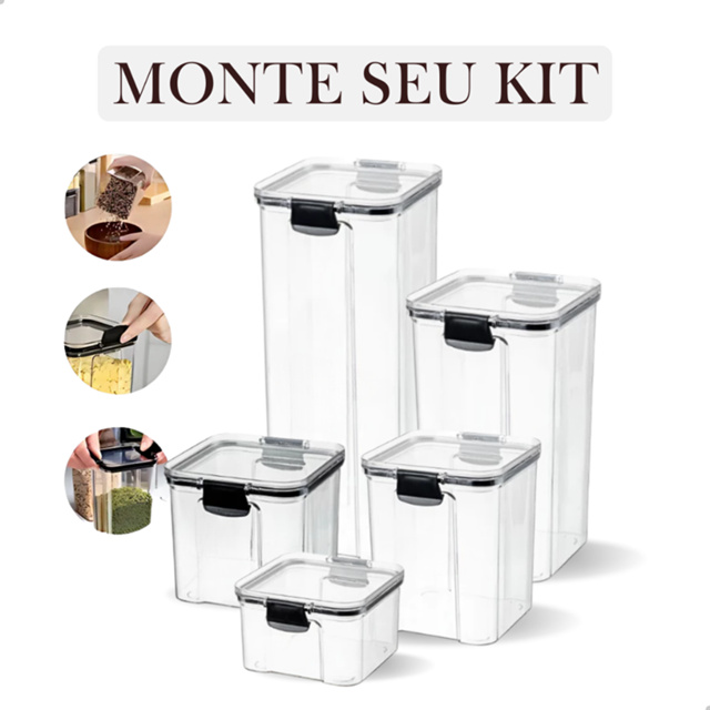 | Monte seu Kit de Potes Herméticos para Mantimentos Cozinha Despensa... este produto | R$ 58,74 | 22% | 4.8/5 | 9 |