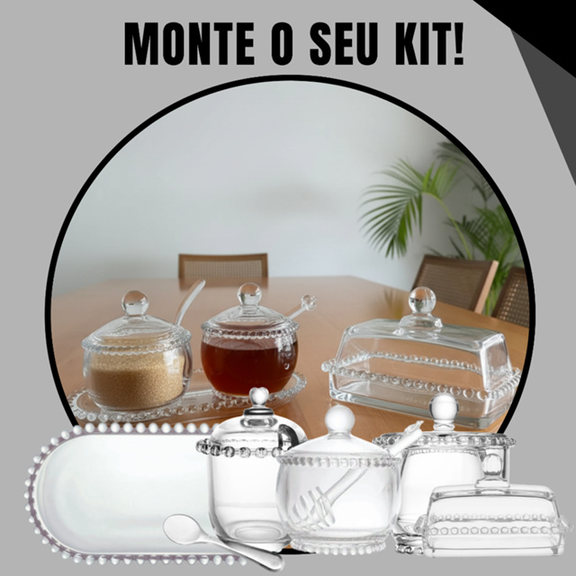 | Monte Seu Kit Jogo Açucareiro Meleira Mantegueira Travessa Cristal ... este produto | R$ 31,18 | 22% | 4.9/5 | 5 |