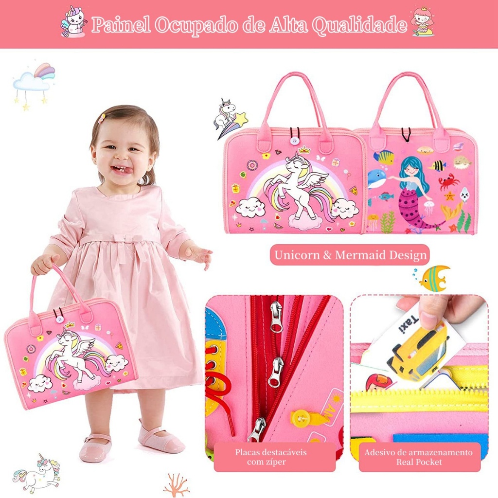 ✨️✨️Damos mais atenção ao design das funções e da diversão do tabuleiro para crianças pequenas, não apenas para garantir que as crianças possam aprender várias habilidades básicas da vida enquanto brincam alegremente, mas também para aprimorar a capacidade de coordenação mão-olho, concentração e pensamento criativo. Foram adicionadas funções mais práticas para melhorar a jogabilidade e a diversão do produto. 1️⃣O tabuleiro ocupado Montessori é baseado em atividades autodirigidas, que permite que as crianças desenvolvam hábitos de estudo independentes e focados, perfeitamente adequado para crianças de 1 2 3 4 anos de idade 2️⃣O livro ocupado da criança visa desenvolver as habilidades motoras finas das crianças e melhorar as mãos -coordenação ocular. Exercite as habilidades de colaboração e comunicação das crianças, e também é um brinquedo adequado para autistas 3️⃣Este brinquedo educacional para viagens infantis é feito de material de algodão de feltro premium, o design portátil da placa ocupada permite que as crianças possam carregá-lo para qualquer lugar, o que também é um verdadeiro brinquedo de viagem para aviões, carros e outras atividades ao ar livre 4️⃣estes brinquedos de tabuleiro sensorial para as crianças aprenderem habilidades básicas da vida, assim como, também desenvolvem a capacidade cognitiva das crianças (como cores, números, alfabeto, aprendizagem de formas), equipado com um quadro DIY em branco que pode permitir que as crianças usem sua imaginação para libertar a criação. 5️⃣O quadro de atividades Montessori pode liberar as mãos dos pais e eles podem se concentrar em fazer suas próprias coisas. Será o melhor presente de aniversário e pré-escola para 1 2 meninos e meninas de 3 anos 🌈SEGURO PARA CRIANÇAS: não tóxico, macio e com costura reforçada. 🌈BRINQUEDOS INTERATIVOS: aproveite o tempo entre pais e filhos com seus filhos pequenos com esses brinquedos Montessori. Você pode ensiná-los a soletrar e contar ou demonstrar como operar. 🌈EXCELENTES BRINQUEDOS DE VIAGEM: Livro silencioso portátil. Leve e com design de alças, esse quadro de atividades para bebês é portátil para as crianças carregarem e brincarem. 🌈Projetado em um tamanho perfeito e flexível, cabe na maioria das bolsas de fraldas ou mochilas escolares. 🌈Elimina o tédio em carros, aviões e viagens. Boa alternativa aos dispositivos de tela em ambientes que precisam de silêncio. ❣️❣️BRINQUEDOS DE APRENDIZAGEM PARA A PRÉ-ESCOLARIDADE: Aprendendo o alfabeto, a ortografia e os números. A capa do tabuleiro é impressa com um interessante alfabeto animal.