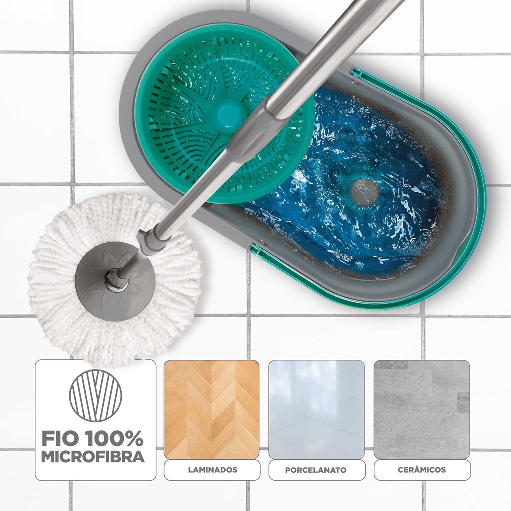 O Mop Compacto 10L Noviça Bettanin é mais um mop da marca fabricado no Brasil. Possui design exclusivo com sistema de trava na alça, o que garante estabilidade e facilita o manuseio do balde. Ele conta com sistema de torção no cabo e na centrífuga do balde, para um melhor aproveitamento da água e uma limpeza mais eficiente. Esse mop é ideal para ambientes pequenos, possui cabo desmontável e é fácil de guardar. O refil compatível com esse produto é o Refil Mop Fit de Microfibra Noviça Bettanin.
