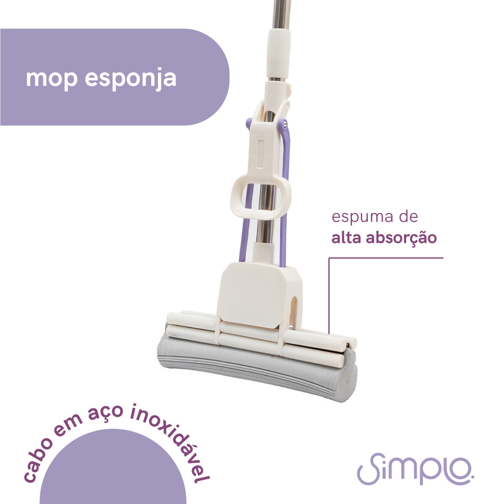 "conheça o mop esponja de alta absorção da Simplo! prático, resistente e moderno, tem sistema de alavanca: possui uma torção eficiente que seca bem a esponja! o cabo é extensível: permite alcançar áreas de difícil acesso, como janelas e embaixo dos móveis. além disso, a espuma é de alta absorção: a espuma de PVA tem propriedades que garantem uma alta absorção dos líquidos. o mop varre, limpa, esfrega e seca! substitui a vassoura, a pá e o rodo. é ideal para esfregar pisos, janelas, azulejos e o que quiser! tem ponteira de silicone: é fácil de pendurar. é de aço inoxidável, esponja de PVA e plástico. é simplo! leve funcionalidade e modernidade para sua casa. medidas: altura: 124,5cm largura: 27cm comprimento: 7cm"