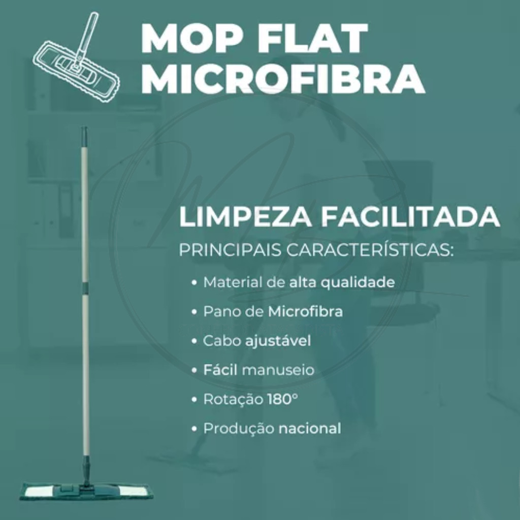 🧼 Mop Flat Microfibra com Cabo Telescópico Flash Limp MOP7657 – Ajustável | Alta Absorção | 3 em 1 O Mop Flat Microfibra MOP7657 da Flash Limp é a solução prática para a limpeza diária. Leve, resistente e eficiente, ele substitui vassoura, rodo e pano de chão, trazendo mais agilidade para sua rotina. Ideal para quem busca limpeza rápida com menos esforço. 🔄 3 em 1 – Mais Praticidade • Substitui vassoura • Substitui rodo • Substitui pano de chão • Limpa e absorve ao mesmo tempo • Facilita a manutenção diária Menos esforço e mais eficiência na limpeza. 📏 Cabo Telescópico Ajustável ➤ Regulagem de altura: 71,5 cm a 120 cm ➤ Estrutura em aço resistente ➤ Melhor ergonomia para diferentes usuários Ajuste ideal para evitar dores nas costas. 💧 Alta Absorção e Versatilidade – Refil em microfibra com grande poder de absorção – Pode ser usado seco ou levemente úmido – Ideal para: ✔ Pisos frios ✔ Pisos sintéticos ✔ Pisos amadeirados 🔁 Base Flexível • Alcança cantos e áreas difíceis • Facilita limpeza embaixo de móveis • Movimento leve e ágil 📦 Conteúdo da Embalagem ✔ 01 Cabo telescópico ✔ 01 Refil de microfibra 📊 Informações Técnicas Peso: • Mop: 340 g Medidas: • Mop: 9 cm x 39 cm x 71,5 cm a 120 cm • Refil: 9 cm x 39 cm x 2 cm Composição: • Mop: Aço / PP • Refil: Poliéster 💰 Excelente custo-benefício para quem quer praticidade, durabilidade e eficiência na limpeza diária. 🚚 Envio rápido 🔒 Compra segura DÚVIDAS FREQUENTES 1. O produto é novo? Sim, o produto anunciado é novo. 2. O produto está disponível em estoque? Sim, disponível para envio imediato após a liberação de sua compra. 3. O produto acompanha nota fiscal? Sim. Trabalhamos somente com produtos originais de fábrica. Verifique sempre os seus dados cadastrais antes de efetuar a compra. ***As imagens poderão ter alteração de cor nos produtos, devido a diferença de cores entre monitores, telas de celulares e luzes ambientes na hora da foto.