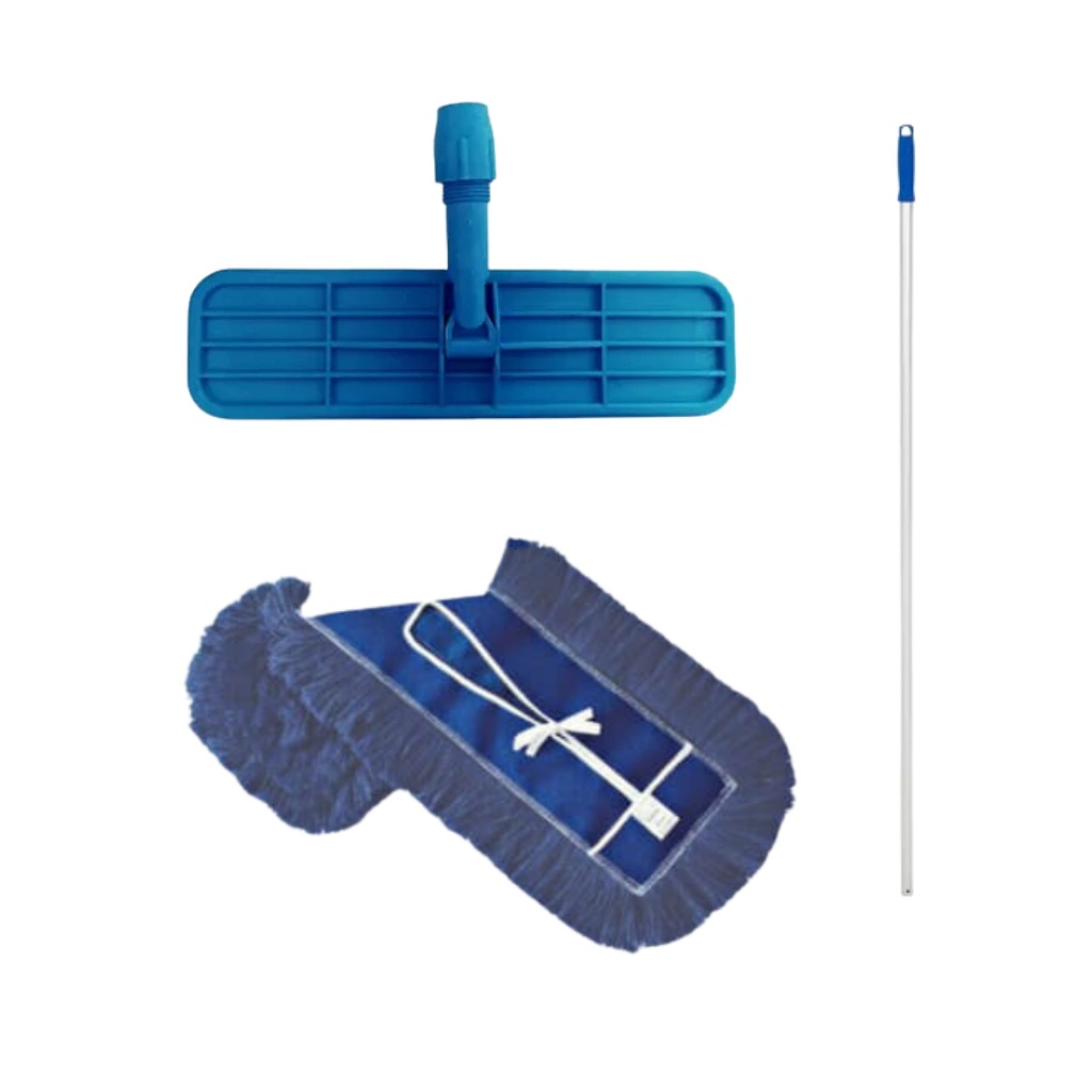Mop Pó Completo 60cm - Limpeza Profissional e Eficiente Mantenha seus ambientes limpos de forma prática e eficaz com o Mop Pó Completo de 60cm! Ideal para quem busca um produto de qualidade profissional para uso residencial, comercial ou industrial. Características: • Tamanho de 60cm: Ideal para limpar grandes áreas de maneira rápida e eficiente. • Material Resistente: Feito com materiais de alta qualidade, garantindo durabilidade e longa vida útil. • Cabo Ergonômico: Proporciona conforto durante o uso, facilitando a limpeza em pisos de todos os tipos. • Refil Lavável e Reutilizável: Economize trocando apenas o refil. O tecido é superabsorvente, garantindo uma limpeza impecável e sem esforço. • Pronto para Uso: O kit já vem completo, basta começar a limpar! Vantagens: • Remove a poeira com eficiência, sem levantar partículas no ar. • Perfeito para pisos lisos, como porcelanato, laminado, vinílico e madeira. • Ideal para ambientes residenciais, escritórios, clínicas e comércios. Dicas de Uso: • Utilize seco para remover pó e detritos. • Após o uso, lave o refil para garantir sua durabilidade e desempenho. Garanta já o Mop Pó Completo 60cm e transforme sua rotina de limpeza com mais praticidade e eficiência! Ficha Técnica 1 unid Cabo Aluminio 1 unid Armação Mop pó 60 cm PP 1 unid Refil Mop pó Sintético Azul 60cm