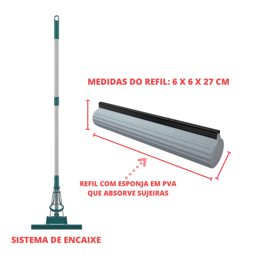 Mop Rodo Mágico Flash Limp Plus Lava e Seca Limpeza Geral com Refil PVA para Pisos Azulejos e Vidros MOP7671