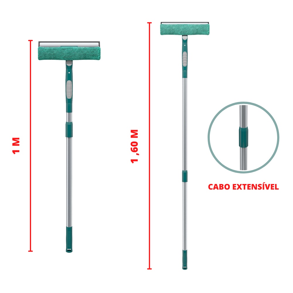 Mop Rodo Mágico Limpa Vidros Extensível Flash Limp com Refil Ideal para Limpar Vidros e Janelas mais Altas