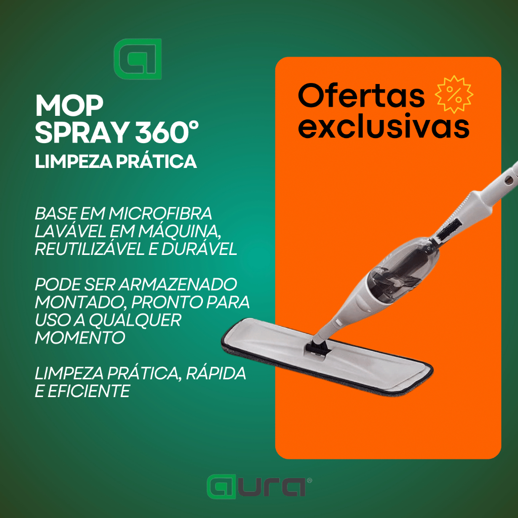 MOP Spray – Limpeza Prática, Rápida e Eficiente Ideal para o dia a dia, o MOP Spray é a solução completa para quem busca praticidade na hora da limpeza. Ele substitui a vassoura, o pano, o balde e a pazinha, tornando sua rotina mais simples e eficiente. Com um sistema inteligente de spray acionado por alavanca, você aplica a solução de limpeza diretamente no piso, sem a necessidade de baldes ou esfregões tradicionais. O reservatório comporta 350 ml da mistura da sua preferência e pode ser mantido abastecido para uso imediato. Além disso, a base em microfibra lavável garante alta performance na remoção de sujeiras e pode ser reutilizada diversas vezes — e quando necessário, é facilmente substituível. Destaques do Produto Spray acionado por alavanca, garantindo mais agilidade na limpeza Reservatório embutido para água ou soluções de limpeza Atinge com facilidade locais de difícil acesso Base em microfibra lavável em máquina, reutilizável e durável Pode ser armazenado montado, pronto para uso a qualquer momento Dimensões e Capacidade Mop Montado: 12 x 35 x 125 cm Capacidade do Reservatório: 350 ml Tamanho da Embalagem: 79 x 19 x 11 cm Perfeito para pisos frios, laminados, madeira, porcelanato e muito mais, o MOP Spray é indispensável para manter sua casa sempre limpa com muito menos esforço.
