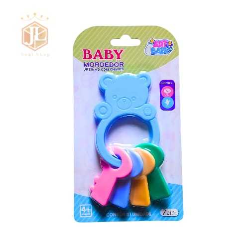 Mordedor Chocalho Urso Com Chaves Para bebê (Rosa, Branco, Azul) ⚠️ MORDEDOR COM PLASTIGO RIGIDO ( DURO ) FEITO PARA SER SER SEMELHANTE A UM CHAVEIRO REAL ⚠️ DESCRIÇÃO Mordedor, acalma o bebe durante a dentição, desenvolvem a sensibilidade tátil estimulam a percepção visual, Materiais seguros e duráveis: O brinquedo é fabricado com materiais de alta qualidade e seguros para bebês, garantindo que possam explorar e morder as peças sem preocupações. Além disso, a durabilidade do material garante que o brinquedo seja resistente ao desgaste causado pelas atividades naturais de brincadeira. Formatos interativos: Cada peça do conjunto possui um formato único, incentivando a criança a explorar diferentes maneiras de segurar, apertar e morder. Essa variedade de formatos contribui para o desenvolvimento da coordenação motora e promove a curiosidade natural do bebê. Fácil de limpar: Pensando na praticidade para os pais, o brinquedo mordedor Pimpolho é fácil de limpar, podendo ser higienizado de maneira simples para garantir a segurança e a saúde do bebê. Material: Plástico Cor: ROSA , AZUL , BRANCO CASO QUEIRA UMA COR ESPECIFICA MANDAR NO CHAT Indicado para bebês + 4 meses