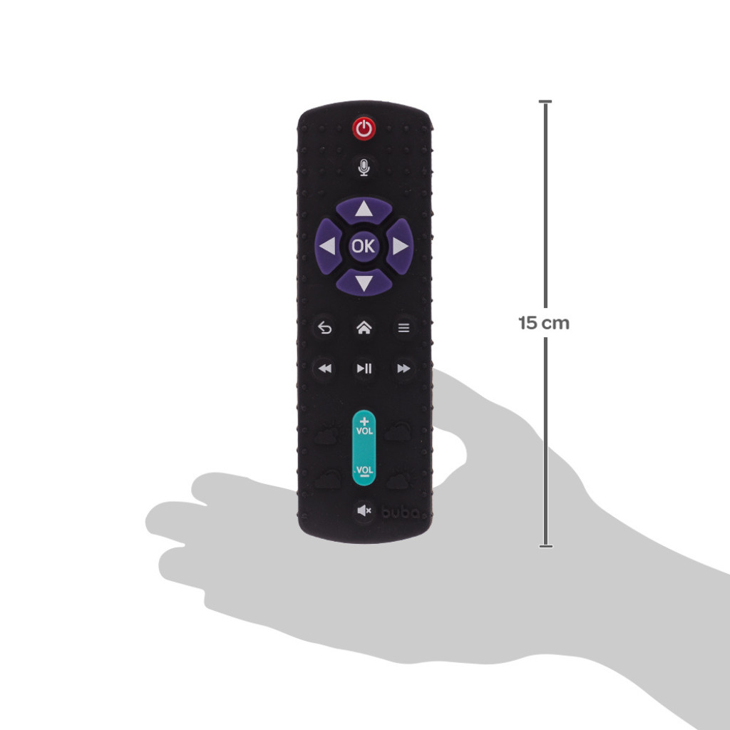 Mordedor Controle Remoto - Buba O Mordedor Controle Remoto da Buba tem o formato do tradicional controle da Tv que os pequenos amam. Produzido em silicone macio, é perfeito para a gengiva sensível do bebê. Possui botões e texturas que aliviam incômodos causados pelo nascimento dos primeiros dentinhos. Livre de BPA e ftalatos. Produto 100% atóxico. Marca: Buba Ref: 18020 Dimensões aproximadas do produto: 5x15cm Composição: 100% Silicone Idade recomendada: +4 Meses