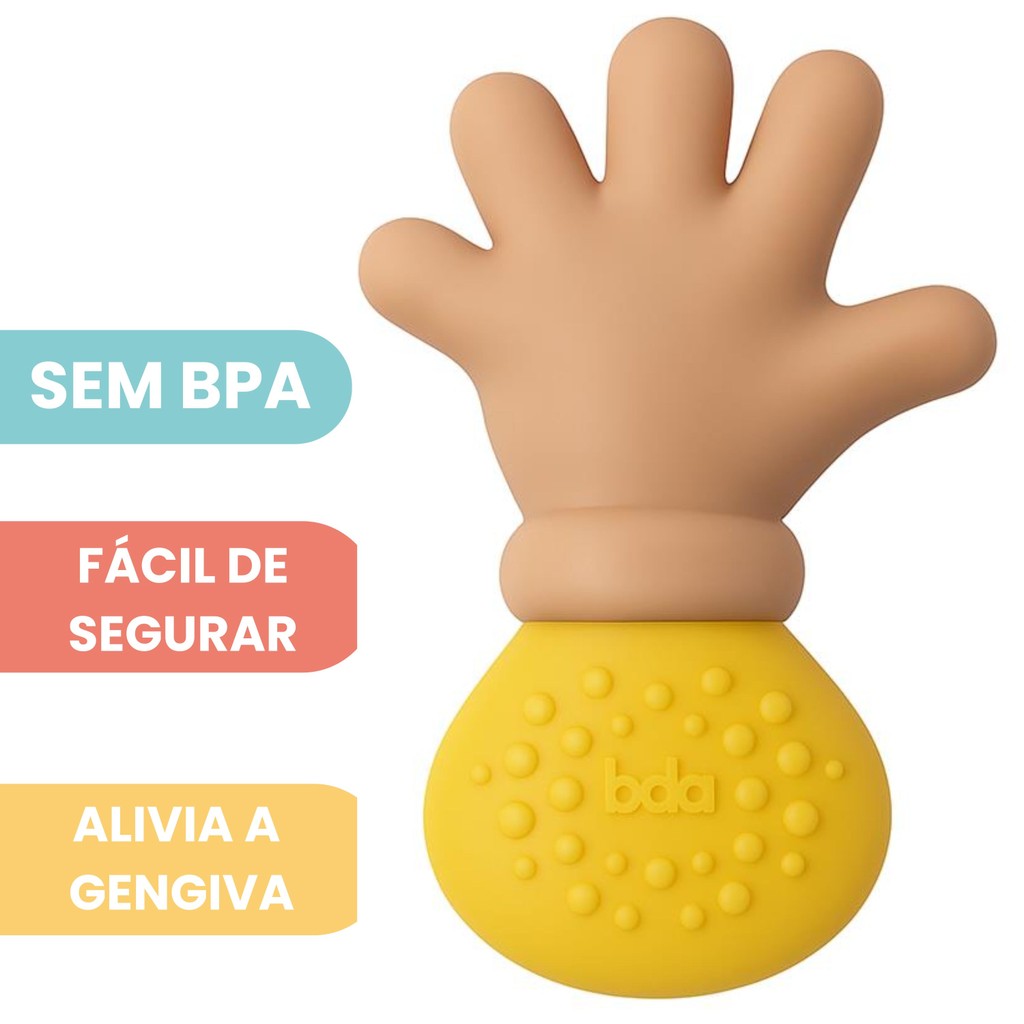 DESCRIÇÃO DO PRODUTO A Mini Mãozinha é um mordedor macio e seguro, especialmente desenvolvido para os pequenos. Com dedinhos suaves e texturizados, oferece uma experiência gostosa e confortável para o bebê morder, aliviando o desconforto do nascimento dos dentinhos. Seu formato ergonômico foi pensado para facilitar o encaixe perfeito nas mãozinhas do bebê, estimulando a coordenação motora e a autonomia desde os primeiros meses. Um companheiro ideal para os momentos de dentição! CARACTERÍSTICAS TÉCNICAS: Conteúdo da Embalagem: 1 Mordedor Mãozinha Amarela Dimensões Aproximadas do Produto: 13 cm x 6 cm x 2 cm (Altura x Largura x Comprimento/Profundidade). Dimensões Aproximadas da Embalagem: 16,5 cm x 7 cm x 7 cm (Altura x Largura x Comprimento/Profundidade). Material/Composição: Vinil Retomoldado atóxico Idade Mínima Recomendada: A partir de 4 meses Participantes: A partir de 1 pessoa Alimentação: Não se aplica Marca: Toyster Referência: 3323 Outras informações: As cores podem variar entre as imagens mostradas acima e o produto. Imagens meramente ilustrativas. Aviso: As informações e imagens divulgadas são de total responsabilidade do fabricante/fornecedor. Produto lacrado e disponível a pronta entrega para todo Brasil! APROVADO PELO INMETRO