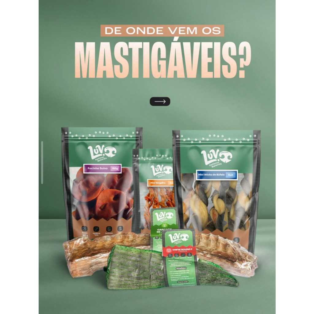 | Mordedor Petisco Natural Luv Petiscos para Cachorro Cães Gato Pet este produto | R$ 38,38 | 5% | 5.0/5 | — |