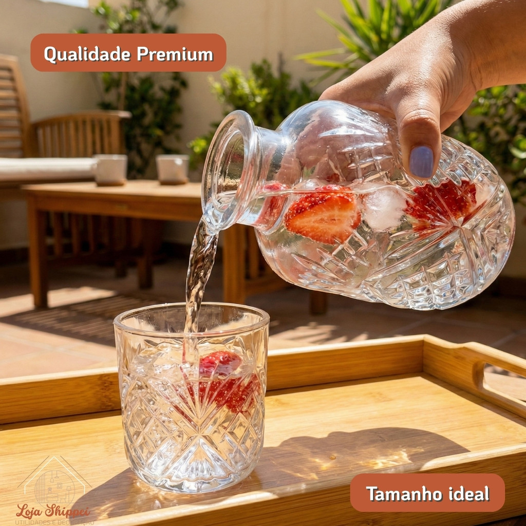 Mantenha-se hidratado com elegância e praticidade durante todo o dia! 💧 A Moringa de Vidro Snow é a companhia perfeita para sua mesa de cabeceira, mesa de trabalho ou cantinho de estudos. Com um design minimalista e sofisticado, ela não apenas facilita o hábito de beber água, mas também serve como um item decorativo refinado que valoriza o ambiente. O grande diferencial deste modelo é a sua funcionalidade inteligente: o copo de 145ml se encaixa perfeitamente no topo da moringa, servindo como tampa. Isso garante que sua água permaneça sempre protegida de poeira e impurezas, mantendo o frescor e uma temperatura agradável por muito mais tempo para um consumo sempre prazeroso. Benefícios: Hidratação Constante: Tenha 500ml de água sempre à mão, evitando deslocamentos contínuos. Estética Minimalista: Vidro de alta transparência que combina com qualquer estilo de decoração, do clássico ao moderno. Higiene e Proteção: O fechamento com o próprio copo mantém a pureza do líquido. Conforto Térmico: O vidro auxilia na manutenção de uma temperatura agradável para a bebida. Informações técnicas Capacidade da Moringa: 500 ml Capacidade do Copo: 145 ml Tamanho Aproximado (Moringa): 14 cm (A) x 8 cm (D) Tamanho Aproximado (Copo): 7 cm Composição/Material: Vidro País de Origem: China Conteúdo da embalagem: 1 Moringa e 1 Copo Aviso: As cores e o brilho podem variar conforme a tela do seu dispositivo.