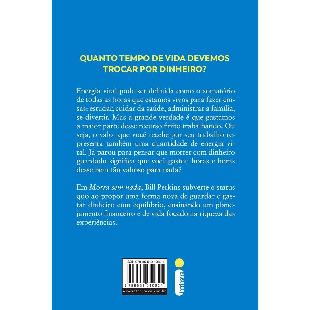 Com abordagem inovadora e provocativa, este guia prático ensina como aproveitar ao máximo o dinheiro em prol de experiências significativas Imagine se, no momento da sua morte, você se desse conta de que sempre seguiu o senso comum: trabalhou duro e economizou bastante dinheiro, esperando ansiosamente pela sonhada liberdade financeira da aposentadoria. É um cenário bastante comum, afinal, quase todos crescemos ouvindo o sábio conselho da fábula de Esopo: não seja como a cigarra, que apenas brincava e aproveitava os dias, mas sim como a formiga, que trabalhava com assiduidade para reservar ganhos que aproveitaria no futuro. Mas e se essa lição não estiver tão certa? Apesar de ser um bom poupador, talvez você não tenha percebido que, agindo assim, desperdiçou o bem mais precioso de todos: sua própria vida. Em Morra sem nada , Bill Perkins, um dos gestores de fundos hedge mais bem-sucedidos do mundo, apresenta uma filosofia surpreendentemente provocativa, que fará você repensar não apenas seu plano de aposentadoria, mas também o verdadeiro valor do dinheiro e qual a relação que ele tem com a jornada da sua vida. Perkins oferece um novo viés sobre como, e quando, devemos transformar economias em experiências, o verdadeiro “capital” que deveria ser nosso propósito. Para isso, conduz o leitor por uma espécie de balanço pessoal, ajudando a entender que adiar indefinidamente sonhos e desejos vai de encontro com a lógica de uma vida feliz. Valendo-se de sua vasta experiência com negócios e baseando-se em conceitos da psicologia financeira e comportamental, Perkins conta histórias inspiradoras e oferece insights reveladores sobre envelhecimento, dinheiro e sua relação com a felicidade. Subvertendo a lógica da fábula de Esopo, Morra sem nada explica por que usar nosso dinheiro em prol de experiências significativas faz tanto sentido diante de nosso tempo limitado na Terra.