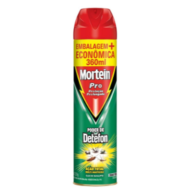O Mortein Poder de Detefon Eucalipto 360ml é um inseticida aerossol de alta performance desenvolvido para eliminar mosquitos, moscas, baratas e outros insetos de forma rápida e eficaz. Sua fórmula contém poderosos agentes de ação imediata, que agem em segundos e mantêm o ambiente protegido por mais tempo. Com agradável fragrância de eucalipto, o produto oferece proteção duradoura e sensação de frescor no ambiente, sem deixar cheiro forte após o uso. É ideal para uso doméstico, proporcionando segurança e praticidade no combate aos insetos mais comuns. Benefícios: Elimina mosquitos, moscas e baratas rapidamente. Ação imediata e proteção prolongada. Fragrância leve de eucalipto, sem cheiro químico intenso. Uso prático com válvula spray de fácil aplicação. Indicado para uso doméstico em diversos ambientes. Produto da linha Mortein Poder de Detefon, reconhecida por sua eficácia comprovada. Modo de uso: Agite bem antes de usar. Pulverize o produto no ambiente, direcionando o jato para cima e longe de pessoas e animais. Deixe o local fechado por alguns minutos após a aplicação. Ventile o ambiente antes de permanecer no local. Informações técnicas: Marca: Mortein Linha: Poder de Detefon Tipo: Inseticida Aerossol Fragrância: Eucalipto Conteúdo: 360ml EAN: 7891035002410 Indicação: Ambientes internos e externos Ação: Eliminação imediata e proteção prolongada contra insetos