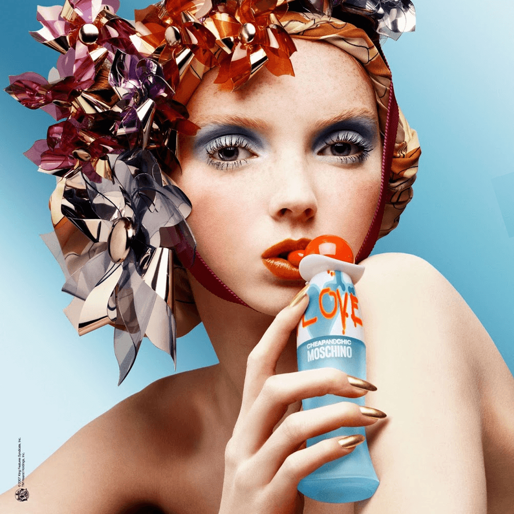 I Love Love é uma fragrância floral frutal cítrica de Moschino para a mulher que está amando e de bem com a vida. Deixa uma sensação de leveza como uma brisa ao tocar as folhas secas que seduz e faz você se apaixonar. Uma mistura exuberante de brilho cintilante e cítrico tendo como nota de cabeça o colorido de flores femininas e pequenos fragmentos de canela, nós moscada, e madeiras nobres, provocando uma sensação de suave brisa. Tem como notas de fundo grapefruit, laranja, limão, chá rosa e lírio do vale. I Love Love de Moschino é para essa nova heroína de contos de fadas, mas não fica parada esperando o príncipe encantado. Ela sai conquistando e apaixonando com alegria. A Marca: Franco Moschino começou sua carreira nos anos 70. A marca Moschino foi lançada em 1983. Suas coleções eram explosões de cores e exagero. Lançou coleções femininas e masculinas, linhas de jeans e perfumes. Após sua morte aos 44 anos em 1994, a marca principal, sua linha mais jovem chamada Moschino Cheap and Chic e Moschino Jeans, passaram a ser comandadas por Rosella Jardini.