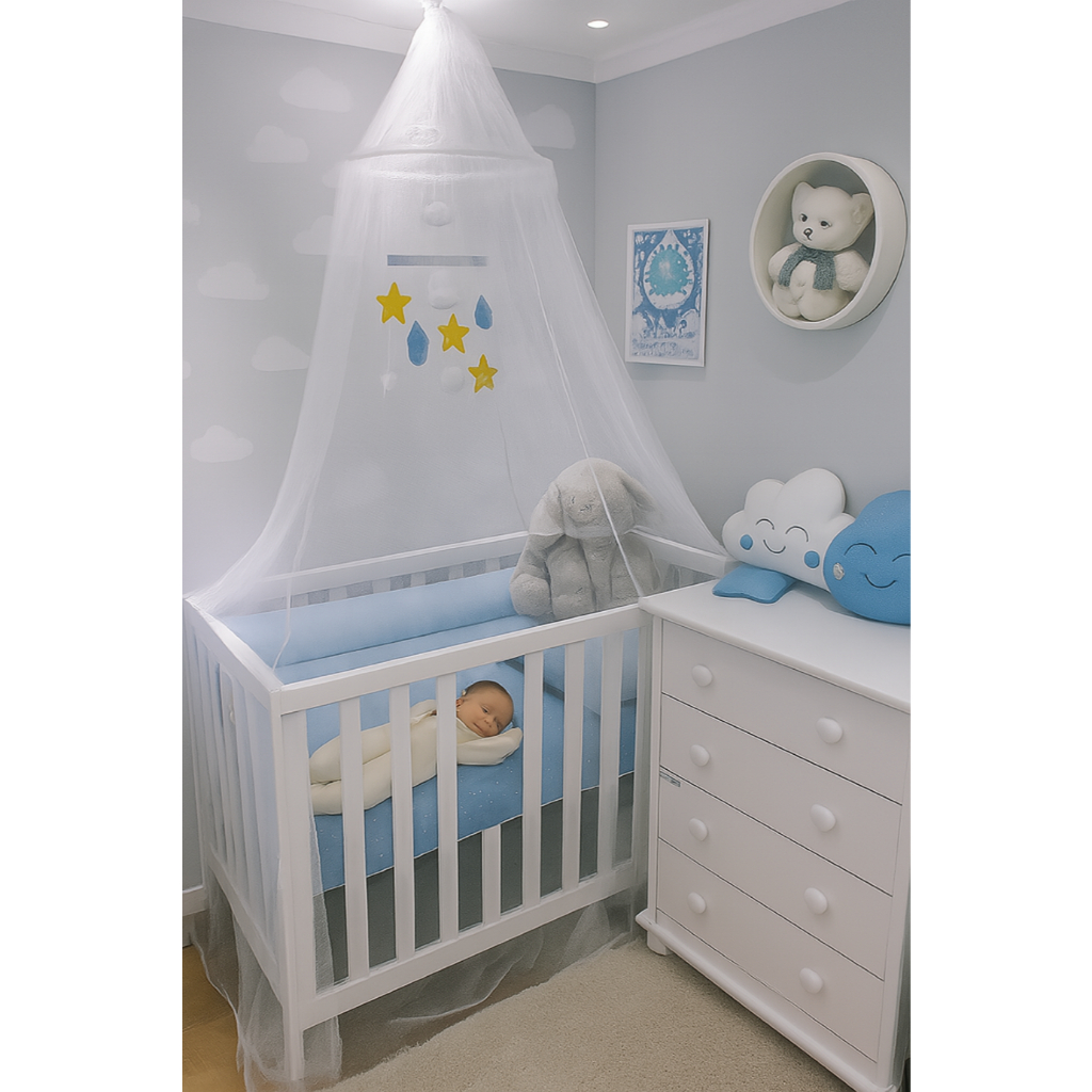 Mosquiteiro com excelentes acabamentos revisados, todo com elástico na borda. ✅Design elegante com caimento leve e sofisticado ✅Elástico na barra, garantindo melhor ajuste e proteção completa ✅Fácil de instalar e compatível com diversos tipos de quarto ✅Alem de proteger seu filho o mosquiteiro e bem fresco permitindo ventilaçao e proteçao Dica: além da função prática, o mosquiteiro também adiciona um toque decorativo romântico e acolhedor ao seu quarto ou quarto do seu filho.