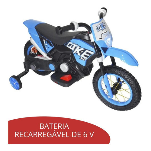 Moto Cross Elétrica Infantil Mini Moto Cross para Crianças Azul Bateria Recarregavel 6V