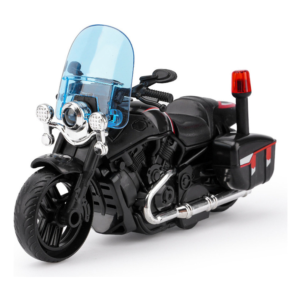 Moto policial infantil com mecanismo a fricção — puxe para trás e solte para brincar! Design robusto,quatro cores vibrantes e som realista (sem pilhas). Ideal para crianças a partir de 3 anos.