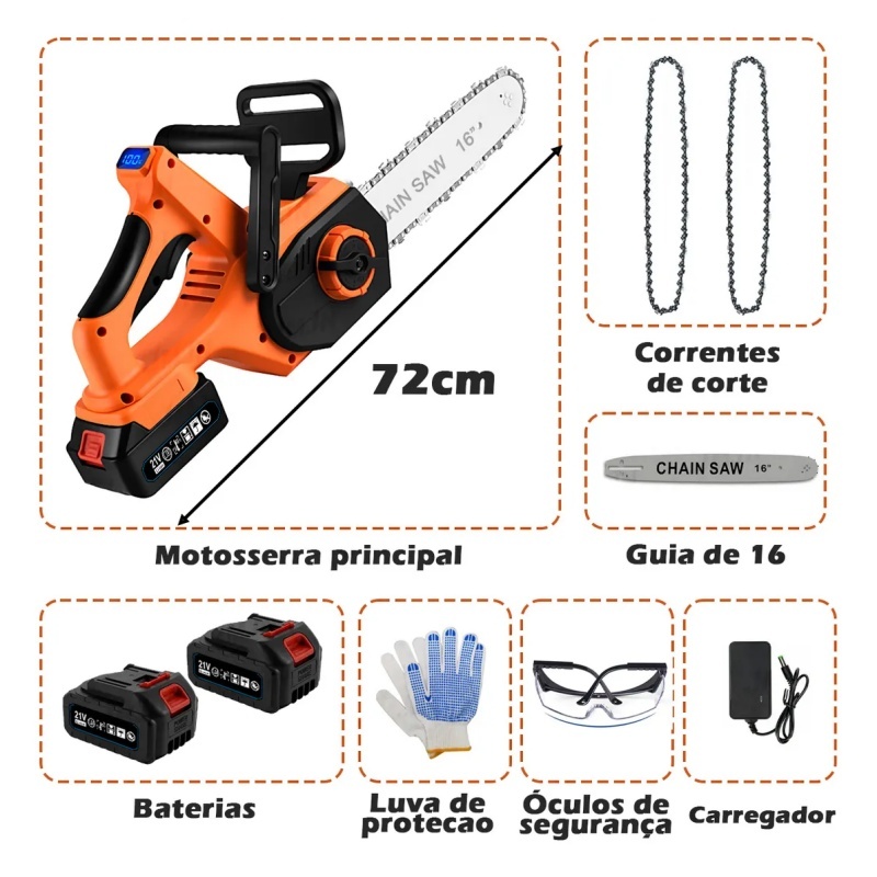 Moto Serras Eletricas Brushles 3000w 16 Polegadas 2 Bateria Laranja 127/220v Motosserra EléTrica Muito Potente Sabre De