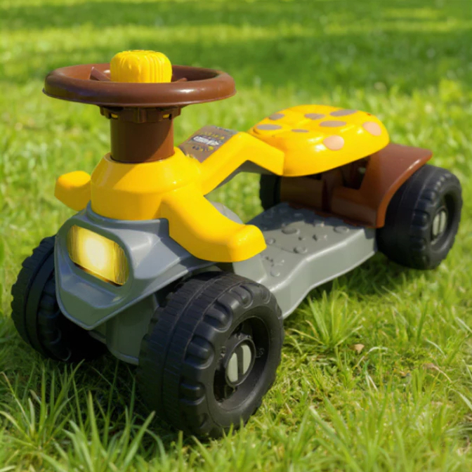 Zig Zaggy – Totoka Motoca Quadriciclo Andador Interativo com Buzina e Volante | Certificado Inmetro Idade: 1 a 3 anos | Suporta até 16 kg ✅ Diversão segura e estímulo motor O Zig Zaggy é o andador ideal para crianças de 18 a 36 meses. Possui estrutura reforçada, design ergonômico e recursos que estimulam a coordenação e a imaginação com total segurança. Principais Recursos Volante direcional com buzina – Desenvolve coordenação motora e incentiva a brincadeira. Assento reforçado com apoio para os pés – Mais conforto e estabilidade. Freio traseiro – Maior controle e segurança. 4 rodas resistentes – Para uso em ambientes internos e externos. Adesivos inclusos – Personalização divertida. Especificações Técnicas Idade recomendada: 18 a 36 meses Peso máximo: 16 kg Dimensões do produto: 54 cm (C) x 33 cm (A) x 27 cm (L) Dimensões da embalagem: 56 cm (C) x 27 cm (L) x 25 cm (A) Montagem: Fácil e rápida Fabricante: Queen Shop | Produto nacional Observações Uso recomendado sob supervisão de um adulto. Indicado para superfícies planas e seguras Brinquedo Não Motorizado