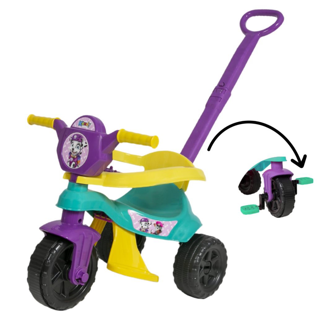 Motoca Menina Completa + Game Aplicativo 3D - Pedal, Apoio, Proteção, Haste - 1 a 3 anos - Inmetro