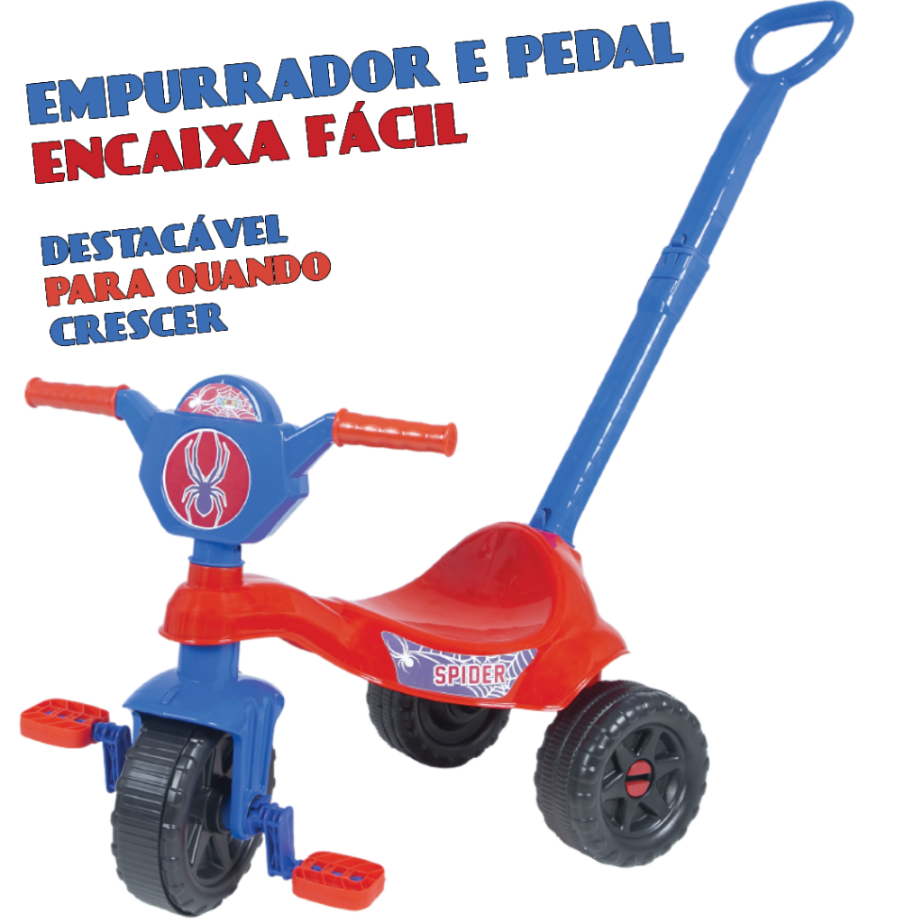 Motoca Triciclo Velotrol Aranha - Com Haste de Empurrar e Pedal -Certificado Inmetro - Motoka modelo Kemotoca