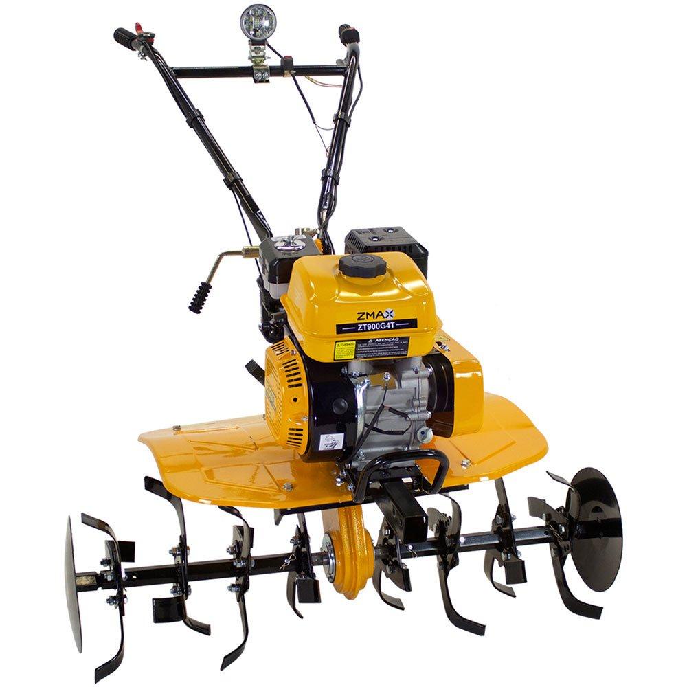 Loja do Mecânico - O que você precisa, nós temos! Motocultivador versátil podendo ser usado para trabalhos de aração ou preparação de solos em pequenas propriedades como sítios, hortas, granjas, solos arenosos e argilosos e campos de arroz. Equipado com motor 4 tempos de 7,0cv, refrigerado a ar, de alto desempenho com tecnologia avançada, componentes de qualidade e design profissional, e com farol LED. - Especificações Técnicas: :: Motor: 4 tempos, :: Refrigerado a ar Potência: 7HP :: Cilindrada: 212cm³ :: Marchas: 2 para frente + 1 marcha ré :: Transmissão: Correia e corrente :: Largura de aração: 800 - 1.000mm :: Profundidade de aração: 150 - 200mm :: Lâminas: 24 (8 conjuntos de 3 lâminas) + Discos laterais :: Capacidade do tanque: 3,6L :: Capacidade do cárter: 600ml :: Partida: Manual retrátil :: Filtro de ar: Banhado a óleo :: Peso: 87Kg - Conteúdo da embalagem: :: 1 Motocultivador a gasolina :: 1 Kit de chaves e parafusos para montagem :: 2 Pneus (maciços ou com câmara dependendo da disponibilidade de estoque) :: Enxadas rotativas :: 2 Discos laterais :: Farol de LED - Garantia: 6 meses - 700083454287 Ref.: ZMAX-ZT900G4T Marca.: ZMAX