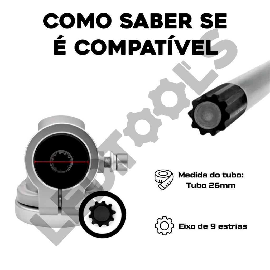 Lâmina Motopoda Para Roçadeira – Diversos Modelos 26mm e 28mm 9 Estrias Transforme sua roçadeira em uma máquina multifuncional com a Moto Poda, prática, versátil e compatível com tubos de 26mm e 28mm 9 estrias. Compatibilidade Compatível com todas as roçadeiras de tubo 26mm e 28mm 9 estrias, incluindo: Tekna: 26CC / 33CC / 43CC / 52CC / 60CC / RL260 / RL330 / RL430 / RL520 / AL260 / AL330 / AL430 / AL520 / RL330TKY / RL335STKY4 / RL430TKY / RL430ACN-TK / RL430ACN-TK2 / RL430AC-G2 Nagano: 26CC / 33CC / 43CC / 52CC / 62CC / RN52L / RN72L / RMF51 / NR41 / RN41 Matsuyama: 26CC / 33CC / 42CC / 52CC Toyama: 26CC / 33CC / 43CC / 52CC / 63CC / TBC26 / TBC33 / TBC43 / TBC52 / TBC63 / RT26 / RT33 / RT43 / RT52 / TBC26SH / TBC33SH / TBC43SH / TBC26X / TBC26DX / TBC26MTX / TBC33X / TBC43H / TBC43X / TBC43XP / TBC52H / TBC52X / RT43L Outras marcas: Bandai, Terra, Kawashima, Vulcan, Gamma Elite, Branco, Lira, Siga Tools, Brutatec, Yamasaki, Ferrari, Cid, FortG, Tramontina, Garthen, Azen, Intech Machine, Nakasaki, Honda, Husqvarna, Makita. Características Montagem Simplificada: Pronta para uso, basta acoplar no tubo da roçadeira e apertar os parafusos. Acompanha Corrente e Sabre de 30cm: Garantindo cortes precisos e de alta qualidade. Versatilidade: Permite transformar sua roçadeira em uma máquina multi-funções, ideal para galhos, arbustos e vegetação. Garantia: Garantia de 3 meses inclusa, proporcionando segurança na sua compra. Itens inclusos: Corrente Sabre Parafusos Informação Importante: Coloque óleo de lubrificação de corrente comum no reservatório antes do uso.