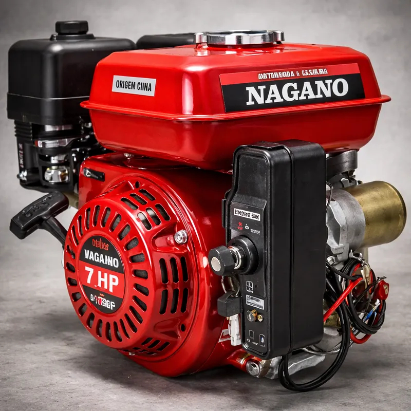 O Motor a Gasolina da NAGANO é resistente, versátil, leve e compacto, o que lhe garante a melhor usabilidade, ideal para empreiteiros, mineradoras, compressores de ar, câmaras frigoríficas, navegação, máquinas e equipamentos agrícolas, construção civil, dentre outras aplicações. Conta com filtro de ar de baixa manutenção, alerta de óleo que serve para garantir que o motor apenas ligue com a quantidade ideal de óleo, e contém partida elétrica e manual. A capacidade do tanque de gasolina é de até 3.6 litros. Ele tem um motor de 4 tempos movido a gasolina, sem a necessidade de fazer a mistura de óleo na gasolina, isso significa que não faz fumaça igual aos antigos motores de 2 tempos, garantindo mais conforto para os clientes. - Eixo chavetado - 22 mm o eixo Tipo: 4 Tempos, Refrigerado a ar Potência: 7HP / 3600 RPM Cilindradas: 210cc Partida: Elétrica Combustível: Gasolina Capacidade do tanque: 3,6 Litros Capacidade do óleo do cárter: 0,6 Litros Autonomia (50% de carga): 14,7 h Nível de ruído: 70dB Medidas do Eixo: 20 mm Dimensão do produto (CxLxA): 380x300x340 mm Dimensão da caixa (CxLxA): 390x330x350 mm Peso Liquido: 15 kg Peso Bruto: 17 kg