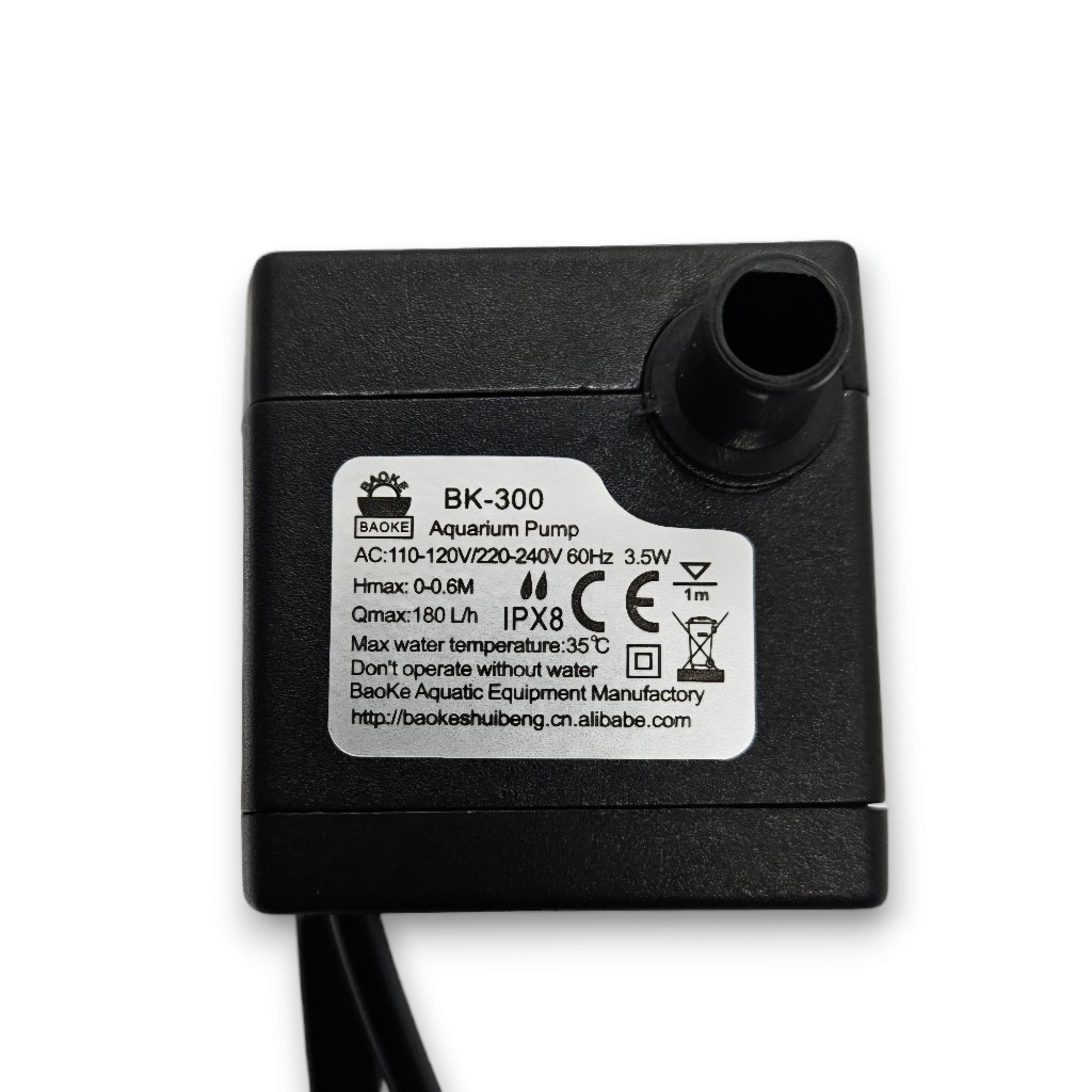Com proteção IPX8, a bomba submersível bivolt Baoke oferece praticidade e durabilidade. Indispensável para uso em fontes de decorações, bebedouros, aquários, entre outros. Características: - Pode ser utilizada na água doce e salgada - Fluxo de água ajustável - Baixo consumo de energia - Possui ventosas para fixação - 1 lâmpada LED que alterna de cor automaticamente - Desmontável - Fácil de limpar - Silenciosa Dados Técnicos: - Tensão: Bivolt - Potência: 3.5W - Altura máxima: 60cm - Vazão máxima: 180 L/H - Comprimento do cabo de alimentação: 1,48m - Comprimento do cabo da lâmpada: 48cm - Dimensões: 3,8 x 3,8 x 2,8cm