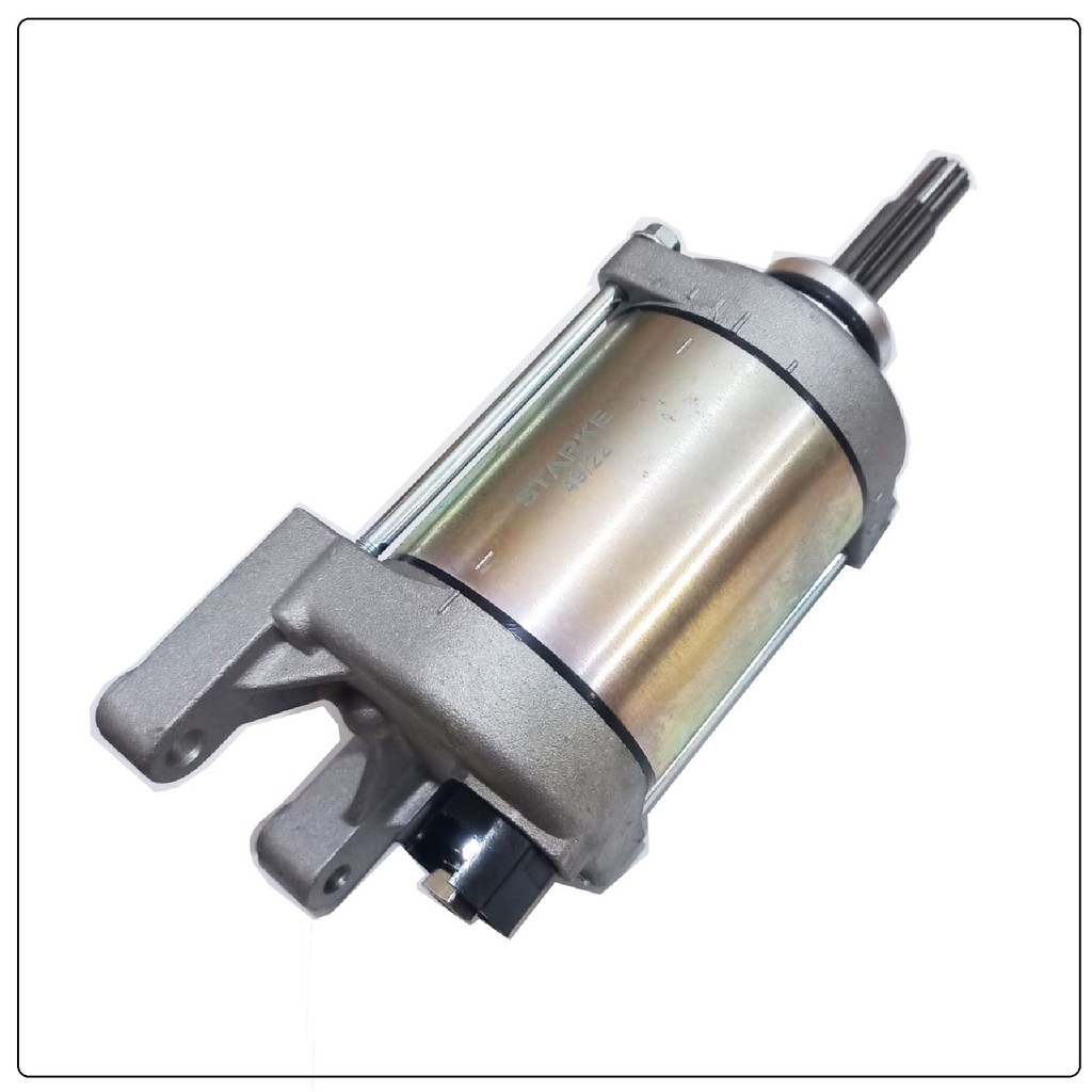Motor de Partida Starke O motor de partida, também conhecido como motor de arranque tem a função de acionar o motor da motocicleta até que ele possa funcionar normalmente sozinho. Ao girar a chave na moto, o motor de partida é acionado diretamente pela bateria, transformando assim essa energia elétrica em mecânica quando o motor é acionado. Conteúdo da Embalagem: 01 Motor de Partida Compatível com: HONDA XRE 300 (2009-2018) CB 300 R (2009-2015) CB 300 R LIMITED (2012-2012) Especificações: - Facilidade na partida e agilidade na instalação; - Torque e potência com baixo consumo da bateria; - Modelos fabricados com rolamento agulha; - Ponto de fixação para encaixes perfeitos, evitando adaptações ou retrabalho Instalação: Este produto é de fácil instalação, não exige que mude a estrutura de sua moto, pois foi confeccionado seguindo as especificações do produto original, para encaixe e funcionamento perfeito. *O motor de arranque utiliza o mesmo padrão da peça original, sendo assim segue todas as especificações do original! Importante: Antes de comprar, verifique o modelo compatível a sua moto. Para a instalação do produto corretamente, leve ao mecânico de sua confiança! Não nos responsabilizamos pelo mau uso do produto.