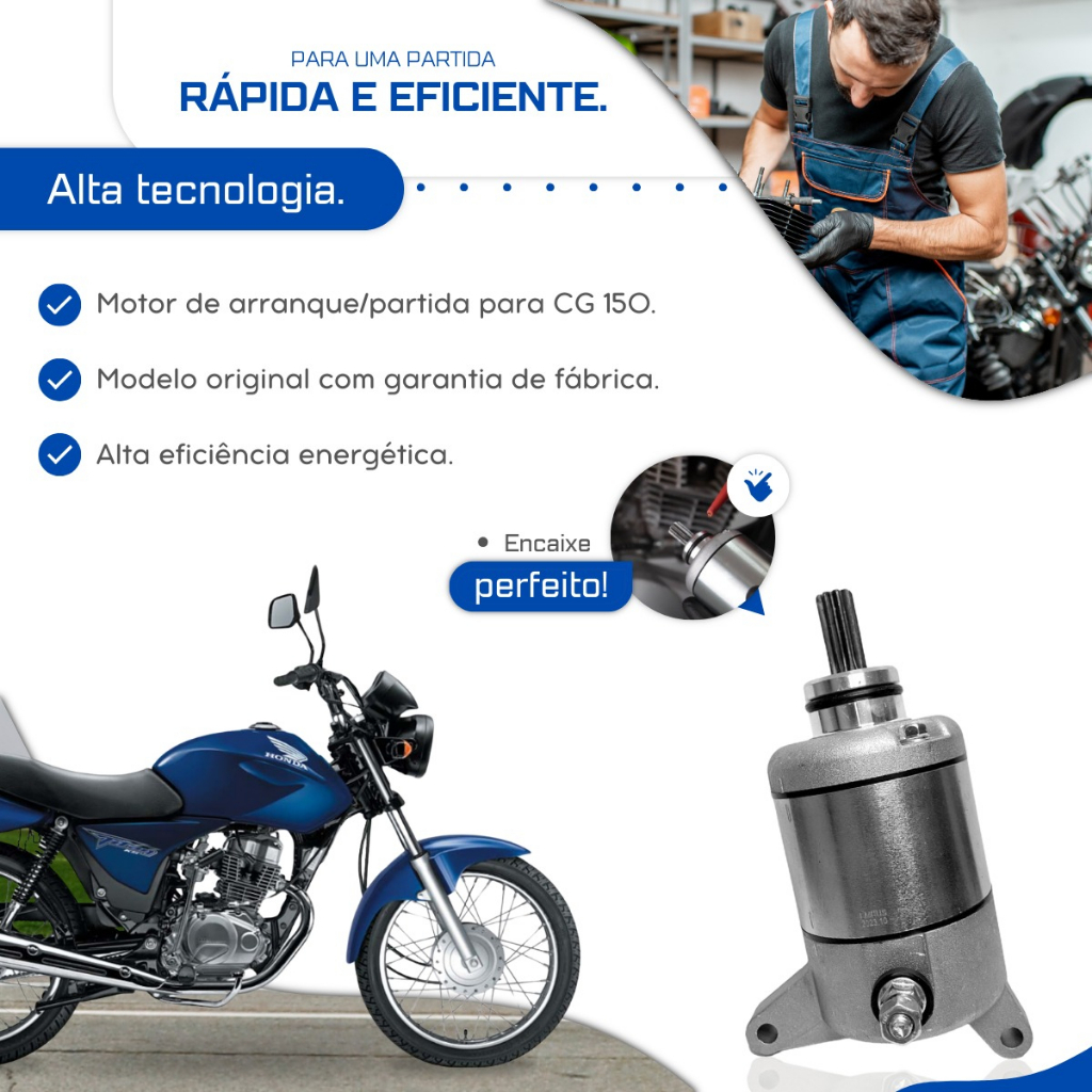 Motor Partida Arranque Titan 150 Fan 150 Bros 150 2004 Até 2015 Fan 125 2009 Até 2016