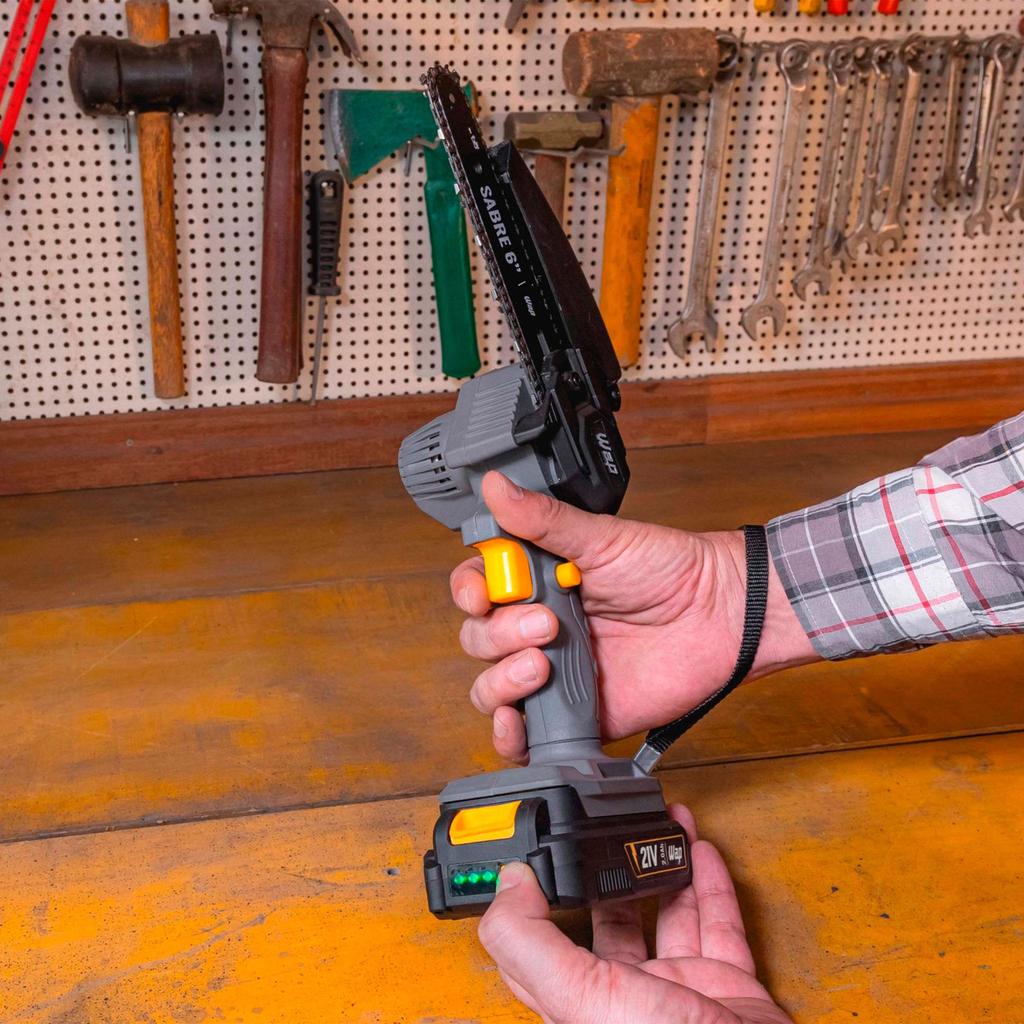 Domine todas as tarefas de poda e corte com facilidade! A Motosserra de Sabre 6" WAP K21 S01 é a ferramenta perfeita para lidar com todas as suas necessidades de poda e corte. Com um design compacto e leve, ela oferece desempenho e facilidade de uso para uma variedade de projetos. Com um sabre de 6" (15,24cm), a Motosserra WAP K21 S01 garante cortes precisos e eficientes. Sua empunhadura ergonômica foi projetada para proporcionar conforto durante o uso. A Motosserra Sabre 6" WAP K21 S01 também vem com uma capa protetora, garantindo a segurança durante o uso. A bateria de Li-íon removível 21V 2000mAh garante versatilidade e torna a escolha perfeita para quem busca realizar cortes em árvores de jardim, pomares e lenha. Além de ser um produto compatível com a bateria WAP 21V K21 BT02. Ao unir robustez e versatilidade, essa bateria oferece um desempenho excepcional para uma variedade de aplicações. Sua tecnologia avançada garante uma carga duradoura e eficiente, permitindo que os usuários explorem todo o potencial de suas ferramentas. Seja para projetos residenciais ou tarefas profissionais, a bateria de 21V se destaca como a escolha ideal para impulsionar a produtividade e a eficácia, mantendo a qualidade e a performance que a marca WAP representa. Domine todas as suas tarefas de poda e corte com a confiança da Motosserra de Sabre 6" WAP K21 S01. Praticidade e eficiência em uma única ferramenta.