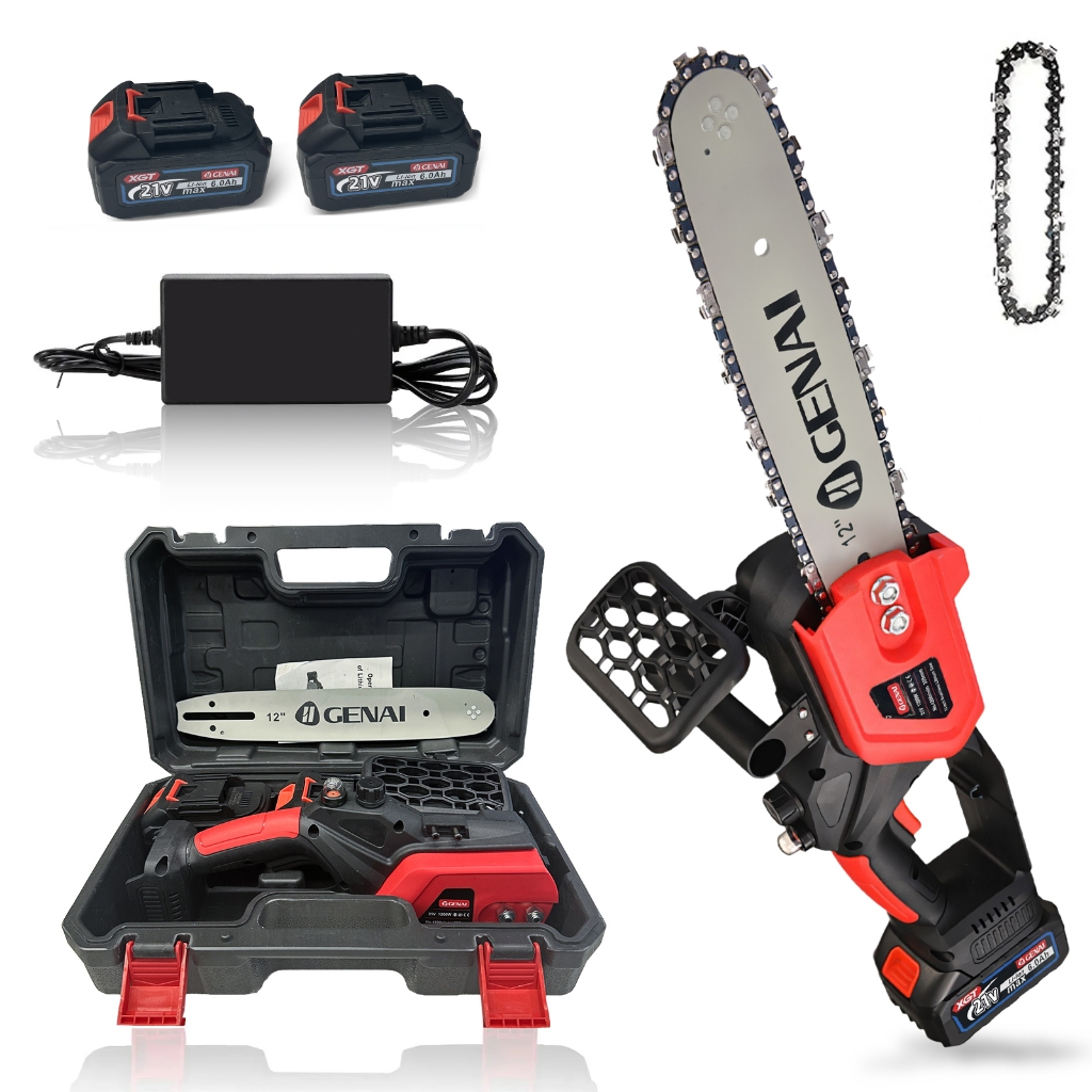 Motosserra Elétrica Profissional 1200W 12" - Kit Completo c/ 2 Baterias 21V 🔧 PRINCIPAIS CARACTERÍSTICAS: ✔ Alta Performance - Motor 1200W com corrente de 4200rpm para cortes rápidos ✔ Sabre Extralongo 30cm - Maior alcance na categoria (corte de galhos grossos) ✔ Autonomia Dupla - 2 baterias 21V Li-ion com carregamento rápido ✔ Design Profissional - Leve (2,4kg) e balanceado para uso com uma mão ✔ Segurança Reforçada - Proteção contra cavacos e punho antiderrapante 🌳 PRINCIPAIS APLICAÇÕES: • Poda de: Árvores frutíferas Cercas vivas Jardins e pomares • Corte de: Galhos até 12" de diâmetro Troncos para lenha Arbustos densos 👨🌾 PERFIL RECOMENDADO: ✓ Jardinistas profissionais ✓ Paisagistas ✓ Proprietários de sítios e chácaras ✓ Equipes de limpeza urbana ✓ Bombeiros e defesa civil ⚙️ ESPECIFICAÇÕES TÉCNICAS: • Potência: 1200W • Voltagem: 21V • Tamanho da corrente: 12" (30cm) • Velocidade: 4200 rpm • Peso: 2,4kg (com bateria) • Material: ABS reforçado + metal • Cor: Vermelho/Preto 📦 CONTEÚDO DO KIT: 1× Motosserra elétrica 2× Baterias 21V Li-ion 1× Carregador bivolt 1× Corrente profissional 12" 1× Maleta de transporte 1× Kit de ferramentas 1× Protetor contra cavacos 1× Manual ilustrado ⚠️ NORMAS DE SEGURANÇA: ① Usar sempre EPIs (luvas, óculos, botinas) ② Manter área livre de pessoas ③ Verificar tensão da corrente antes do uso ④ Não usar em dias chuvosos ⑤ Armazenar com baterias desconectadas 🔄 SISTEMA EXCLUSIVO: → Tecnologia "Battery Swap": trabalhe ininterruptamente trocando as baterias → Carregamento rápido (1h para 80%) → Proteção contra sobrecarga e superaquecimento 🏆 DIFERENCIAIS: • Motor 100% cobre - maior durabilidade • Corrente de aço temperado - mantém o fio por mais tempo • 30% mais silenciosa que modelos a gasolina • Livre de emissões poluentes • Manutenção simplificada 💡 DICAS TÉCNICAS: Para galhos verdes: iniciar corte na parte inferior Para madeira seca: usar movimento de vaivém Limpar a corrente após cada uso Afiar a corrente a cada 5h de uso Armazenar em local seco 🌿 POR QUE ESCOLHER? Ideal para quem busca: → Potência profissional sem o incômodo do motor a gasolina → Mobilidade total (sem fios ou combustível) → Kit completo para trabalho imediato → Versatilidade para uso doméstico e profissional Perfecta para: • Manutenção de áreas verdes • Preparação de lenha • Limpeza pós-tempestade • Projetos de paisagismo • Emergências ambientais GARANTIA: 12 meses contra defeitos de fabricação