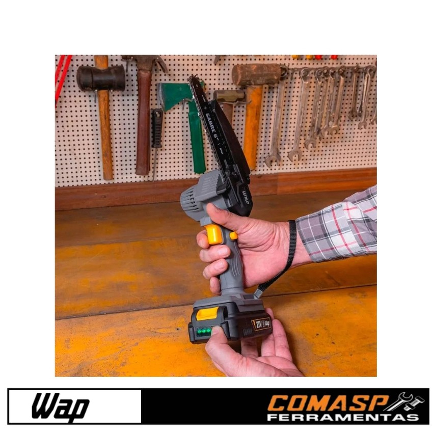 VENDIDO POR COMASP FERRAMENTAS | EMITIMOS NOTA FISCAL Motosserra WAP Sabre de 6” 21V - Corte Fácil e Sem Fios! 🌳⚡ Perfeita para cortar galhos, madeira e fazer pequenos serviços sem esforço! Leve, prática e sem fio, ela vai aonde você precisar com sua bateria recarregável 21V e sabre afiado de 6 polegadas. ✅ Ideal para: ✔️ Jardinagem e podas ✔️ Projetos DIY em casa ✔️ Pequenos reparos na madeira ✔️ Levar para o sítio ou chácara 📦 Kit completo: 🔹 Motosserra WAP K21S01 🔹 Bateria + carregador 🔹 Maleta resistente para guardar e transportar 💡 Destaques: 🔸 Leve e ergonômica (só 1,9 kg!) – fácil de usar por muito tempo 🔸 Sem fios ou gasolina – mais liberdade e menos bagunça 🔸 Corte rápido e preciso – sem complicação 👉 Adquira já a sua e tenha praticidade na hora de cortar! 🛠️💚
