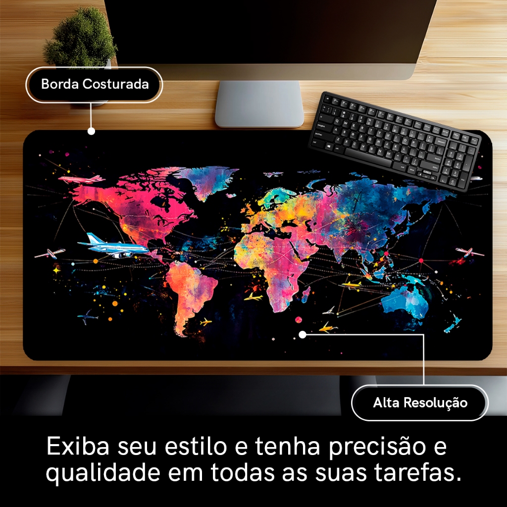 Mouse Pad Gamer Paises Antiderrapante Grande 70x35 80x35 90x40 90x50 cm Jogos Anime Borda Costurada M2242