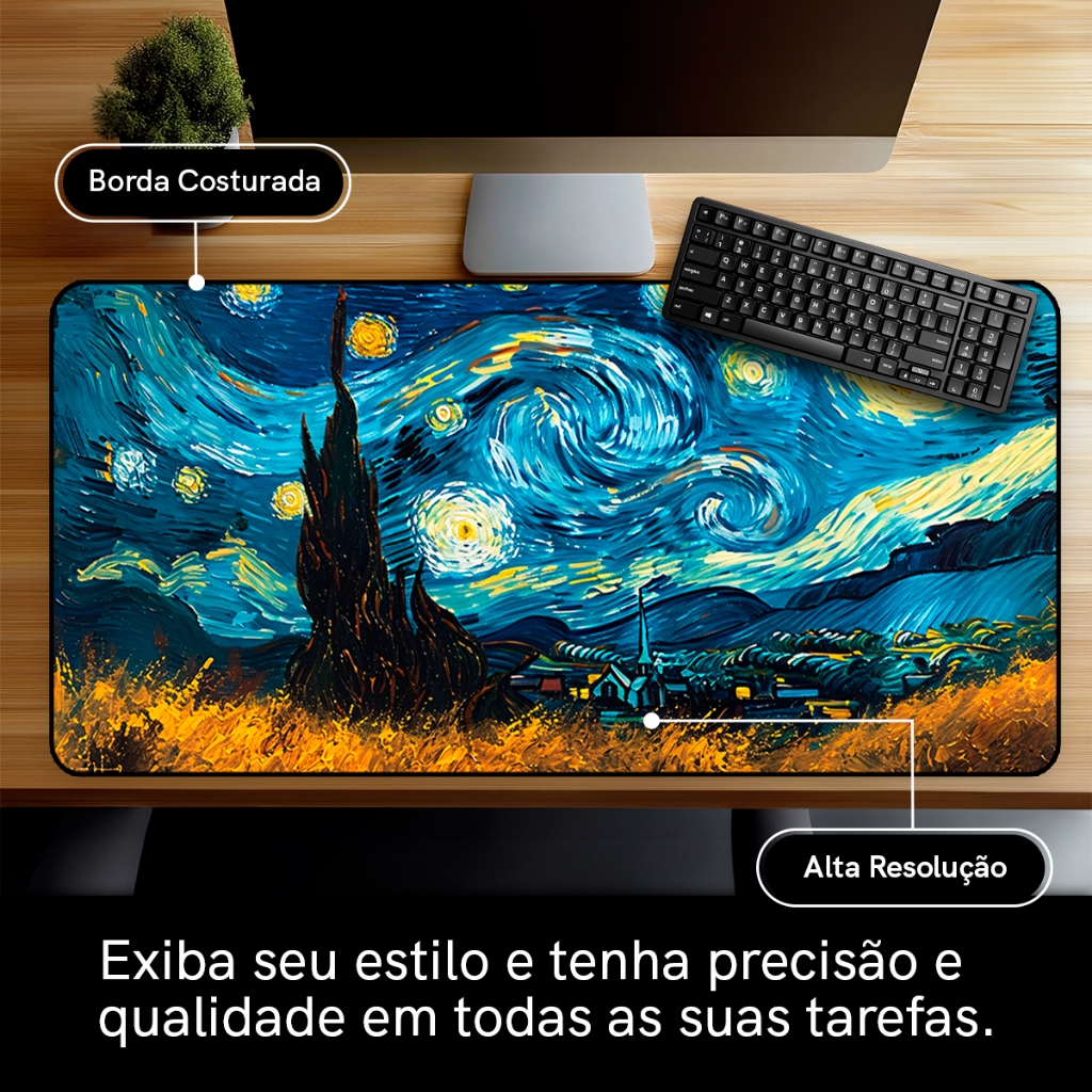 Mouse Pad Gamer Pintura Antiderrapante Grande 70x35 80x35 90x40 90x50 cm borda costurada