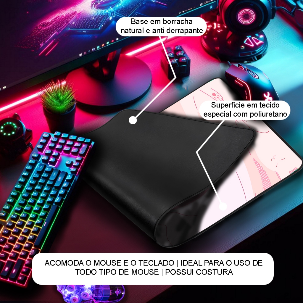 Apresentamos a nossa coleção exclusiva de Mousepads Gamers, onde funcionalidade encontra expressão pessoal. Projetados para se destacar tanto em estilo quanto em desempenho, esses mousepads oferecem uma fusão perfeita de arte e utilidade. Escolha entre uma variedade de estampas vibrantes e cativantes que permitem que você adicione um toque único à sua estação de trabalho. Desde designs geométricos modernos até ilustrações inspiradas na cultura pop, nossa coleção abrange uma ampla gama de estilos, permitindo que você encontre o mousepad perfeito que combina com a sua personalidade. A versatilidade é a chave com tamanhos que se adaptam a qualquer configuração. Seja você um jogador ávido que precisa de espaço extra para movimentos rápidos ou alguém que trabalha em projetos criativos, nossos mousepads estão disponíveis em tamanhos que se adequam a todas as necessidades. Além do visual impressionante, nossos mousepads apresentam uma superfície de alta precisão que proporciona um rastreamento suave e consistente para todos os tipos de mouses. A base antiderrapante garante estabilidade em qualquer superfície, mantendo seu mousepad no lugar, independentemente de quanto você esteja imerso em suas atividades. Especificações: Design Exclusivo: Diversas estampas em referencias a cultura geek e pop, garantindo um visual único e moderno. Superfície de Poliuretano: Oferece uma alta precisão para o movimento do mouse, ideal para gamers e profissionais que necessitam de uma resposta rápida e suave. Base Antiderrapante: Mantém o mousepad firmemente no lugar, evitando deslizamentos indesejados durante o uso. Borda Costurada: A borda costurada proporciona maior durabilidade, evitando o desgaste e desfiamento com o tempo. Conforto e Desempenho: A combinação perfeita de estilo e funcionalidade, com superfície de poliuretano aumentando o desempenho em todas as atividades no computador. Medidas: 70x35 cm 1mm de Espessura