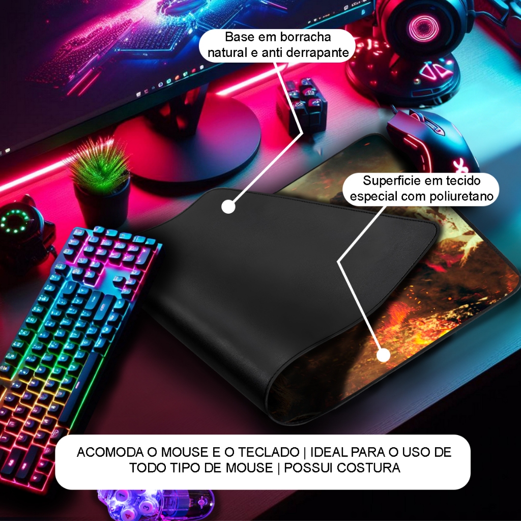 Mouse Pad Gamer Premium 70x35cm Borda Costurada Diversas Estampas RPG Arcade Games