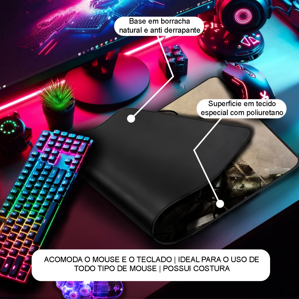 Mouse Pad Gamer Premium Diversos Tamanhos Borda Costurada Estampas FPS