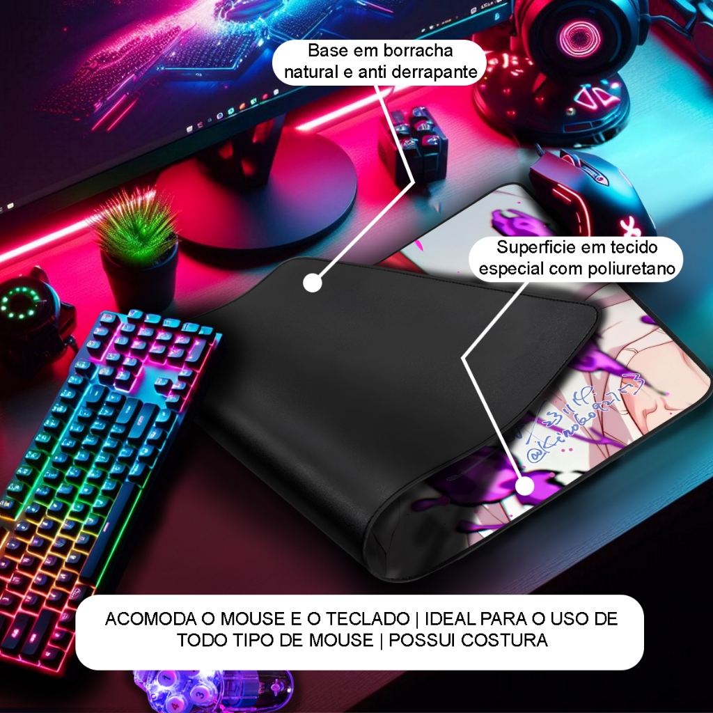 Apresentamos a nossa coleção exclusiva de Mousepads Gamers, onde funcionalidade encontra expressão pessoal. Projetados para se destacar tanto em estilo quanto em desempenho, esses mousepads oferecem uma fusão perfeita de arte e utilidade. Escolha entre uma variedade de estampas vibrantes e cativantes que permitem que você adicione um toque único à sua estação de trabalho. Desde designs geométricos modernos até ilustrações inspiradas na cultura pop, nossa coleção abrange uma ampla gama de estilos, permitindo que você encontre o mousepad perfeito que combina com a sua personalidade. A versatilidade é a chave com tamanhos que se adaptam a qualquer configuração. Seja você um jogador ávido que precisa de espaço extra para movimentos rápidos ou alguém que trabalha em projetos criativos, nossos mousepads estão disponíveis em tamanhos que se adequam a todas as necessidades. Além do visual impressionante, nossos mousepads apresentam uma superfície de alta precisão que proporciona um rastreamento suave e consistente para todos os tipos de mouses. A base antiderrapante garante estabilidade em qualquer superfície, mantendo seu mousepad no lugar, independentemente de quanto você esteja imerso em suas atividades. Especificações: Design Exclusivo: Diversas estampas em referencias a cultura geek e pop, garantindo um visual único e moderno. Superfície de Poliuretano: Oferece uma alta precisão para o movimento do mouse, ideal para gamers e profissionais que necessitam de uma resposta rápida e suave. Base Antiderrapante: Mantém o mousepad firmemente no lugar, evitando deslizamentos indesejados durante o uso. Borda Costurada: A borda costurada proporciona maior durabilidade, evitando o desgaste e desfiamento com o tempo. Conforto e Desempenho: A combinação perfeita de estilo e funcionalidade, com superfície de poliuretano aumentando o desempenho em todas as atividades no computador. Medidas: 90x55 cm 1mm de Espessura
