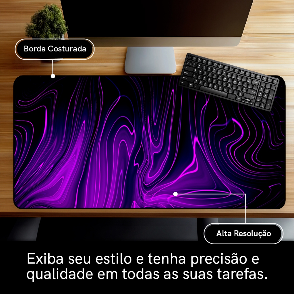 Mouse Pad Gamer Purple Antiderrapante Grande 70x35 80x35 90x40 90x50 cm Borda Costurada