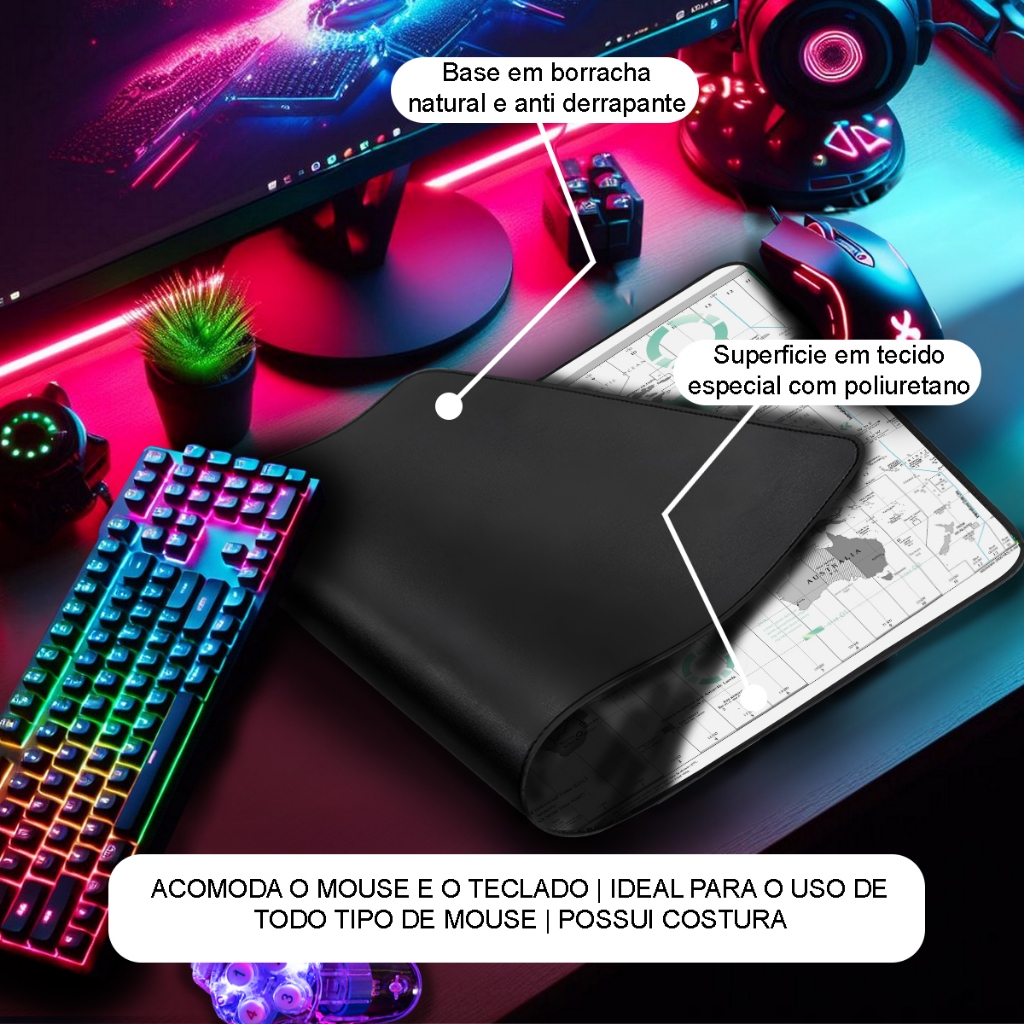Mouse Pad Gamer Speede Premium Estampas Mapa-mundi Borda Costurada Diversos Tamanhos