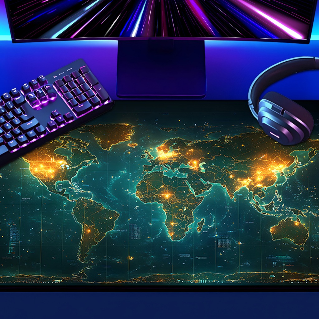 Mouse Pad Grande Mapa Mundi IA 65x30 70x35 80x35 90x40 90x50 120x60 Antiderrapante Borda Costurada