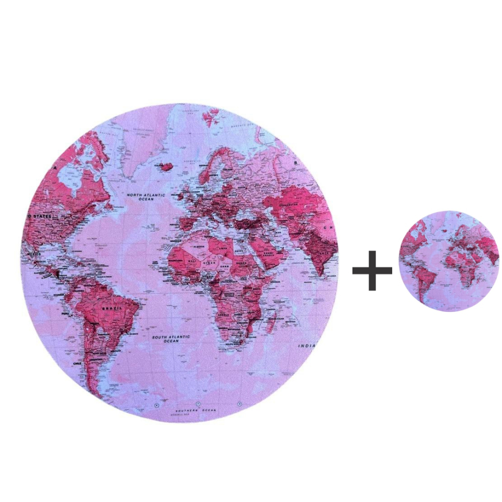 Mouse Pad Mapa Mundi Rosa com Porta Copo
