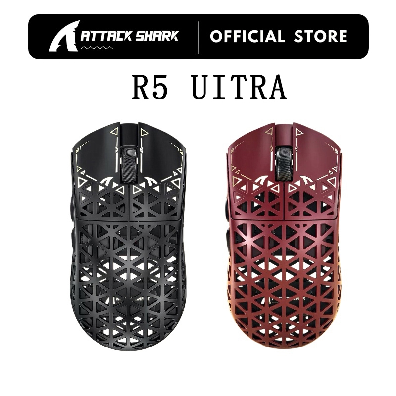 Mouse Para Jogos Sem Fio ATTACK SHARK R5 8K 42K DPI-PAW3950 MAX Sensor-39g Design Oco De Fibra De Carbono Ultraleve