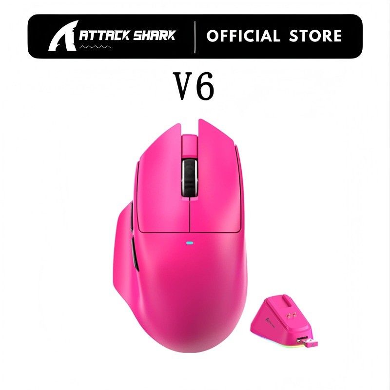 Série ATTACK SHARK V6 | Ratos para jogos leves de Tri-modo Base ergonômica V6 O V6 apresenta um formato de mão direita contornado adaptado para mãos média a grande, oferecendo controle estável e rastreamento superior. O BK52820 MCU oferece conectividade sem fio de alta performance e baixa frequência. O encaixe de carregamento RGB magnético incluído permite fácil carregamento plug-and-play do plug-play, liberando você da desordem do cabo. Sensor PAW3311 e 65g de construção Equipado com o sensor principal PixArt PAW3311, este modelo suporta 25.000 DPI, taxa de sondagem de 1KHz, 400 IPS e aceleração de 40G. Seis níveis de DPI ajustáveis Six (800–25.000) permitem ajuste preciso de sensibilidade. Também possui micro-interruptores Omron de 100 milhões de cliques em micro-interruptores Omron para feedback nítido e durável, todos alojados em uma concha leve ~ 65g com um revestimento macio de toque. Conectividade Tri-Mode Ambos os modelos suportam conectividade de modo triplo—2,4 GHz, operação Bluetooth e com fio—entrega flexibilidade para jogos, trabalho e uso em movimento. Borda de jogo completa De sensores robustos e formas ergonômicas para carregamento magnético rápido, a série ATTACK SHARK V6 oferece atualizações completas para jogadores que exigem precisão, conforto e confiabilidade em todas as partidas.