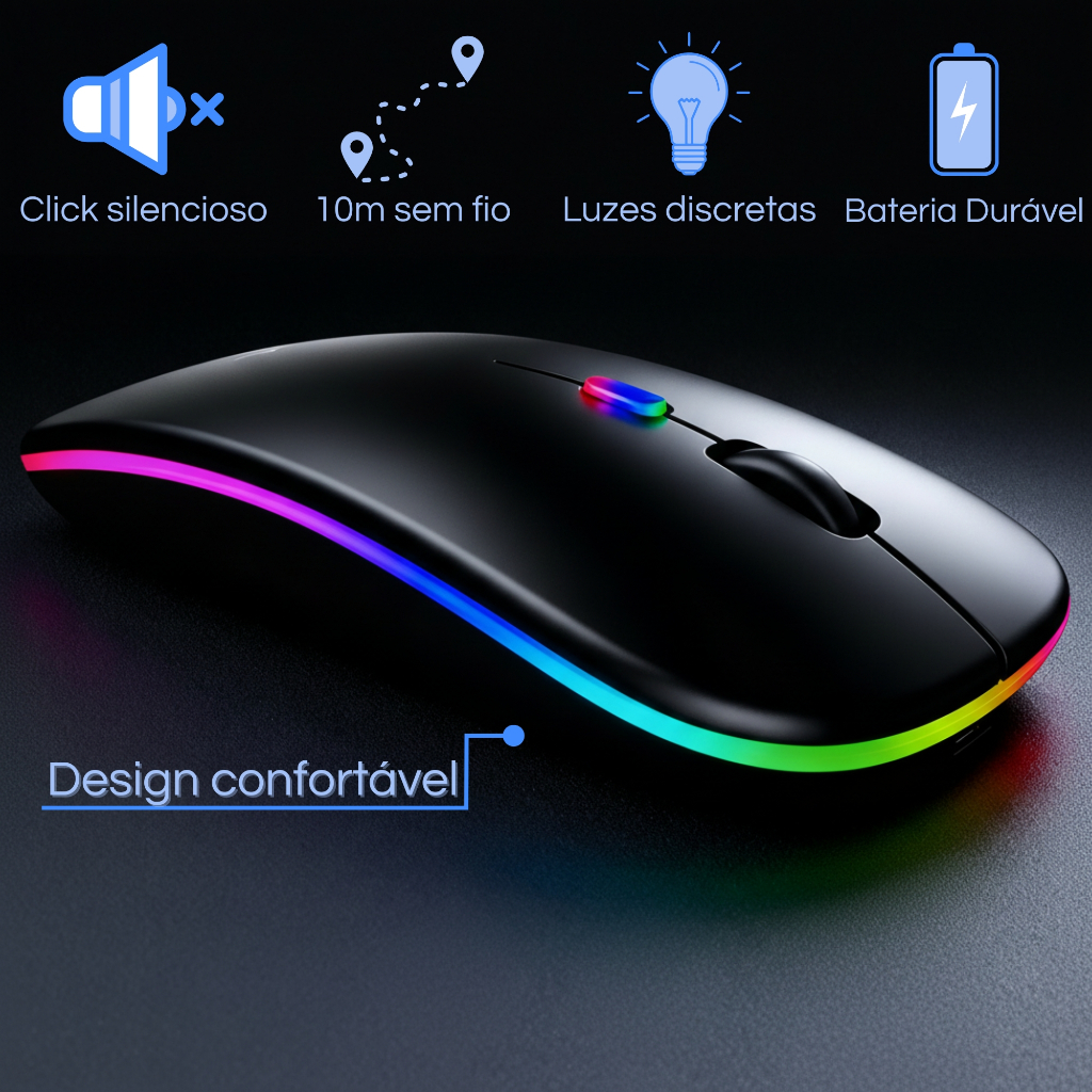 Mouse Sem Fio Bluetooth Recarregavel Ergonomico Rgb Led Silencioso Wireless